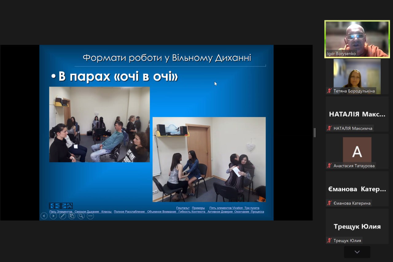 Крім теоретичних аспектів лектор описав практичні формати роботи у вільному диханні, навів приклади з власної багаторічної практики, відповів на численні запитання учасників.