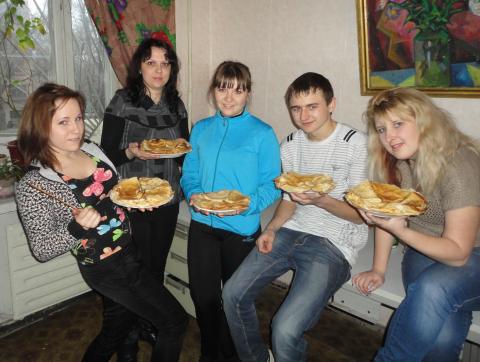 14 березня 2013 року о 15 годині студентська рада гуртожитку зібралася на кухні першого поверху та почали виготовляти ажурні млинці, золотисті, як весняне сонечко. У смаженні млинців також прийняли участь адміністрація гуртожитку, яка подарувала на стіл студентам млинці фаршировані грибами. Дев'ять літрів молока пішло на виготовлення млинців, для того, щоб жоден студент не залишився осторонь. Близько 17 години вечора стіл був накритий: млинці фаршировані грибами, м'ясом, смаженою капустою, зі сметаною та згущеним молоком, печиво та цукерки яскраво виглядали на святковому столі.
