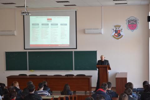 Для проведення майстер-класу був запрошений начальник управління інформаційних систем Орєшкін Юрій Ігорович. Він одразу ж перейшов до справи, відмічаючи дуже важливі аспекти працевлаштування, які треба враховувати кожному студентові. Наприклад, був винесений такий серйозний показник, як досвід роботи, без якого молодим спеціалістам буде важко, а також названі особливості проходження співбесіди.