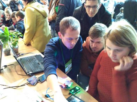 Напрям підготовки студентів по кафедрі Мікро- та наноелектроніки – «Автоматизація та приладобудування» (шифр 15), що передбачає оволодінням студентами знань щодо мікропроцесорних / мікроконтролерних автоматизованих систем. На початковому етапі вивчення відповідних дисциплін студенти кафедри МіНЕ навчаються розроблювати нескладні системи на базі Arduino, тому для кращого засвоєння інформації, саме студенти виступають в якості персональних тренерів-викладачів в майстер-класах, при загальному керівництві викладачів. Керівники проекту − ст.викл. Рева Віталій Ігорович та доц. Василенко Ольга Валентинівна.