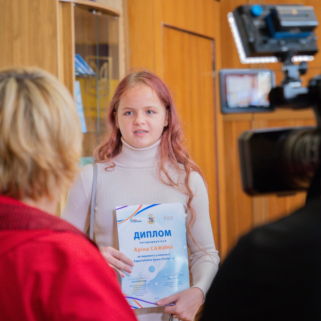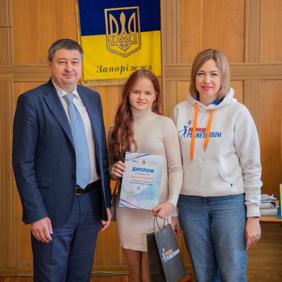 Переможців конкурсу «Zaporizhzhia Space Challenge» нагородили виконавча директорка ГО «Аерокосмічний музейний центр культури та освіти молоді» (Planetarium Noosphere) Юлія Прибиткова та ректор НУ «Запорізька політехніка» Віктор Грешта.