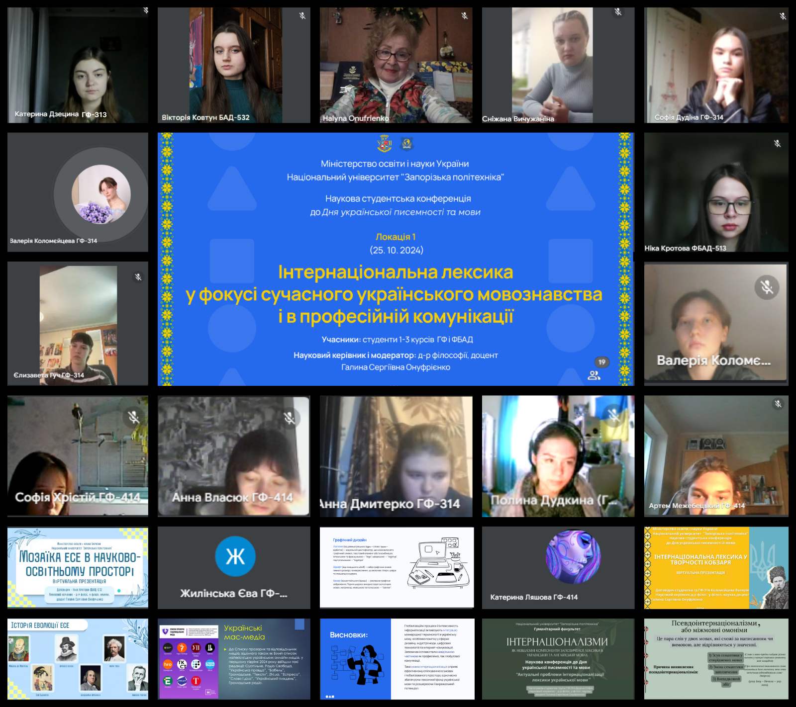 На гостьовій київській локації (модераторка — професорка Анжела Красницька) виступили з доповідями про інтернаціоналізми в офіційно-діловому та науковому стилях української мови студенти другого курсу Навчально-наукового інституту права та психології Аміна Войнова, Єлизавета Палій, Ангеліна Слепко.
