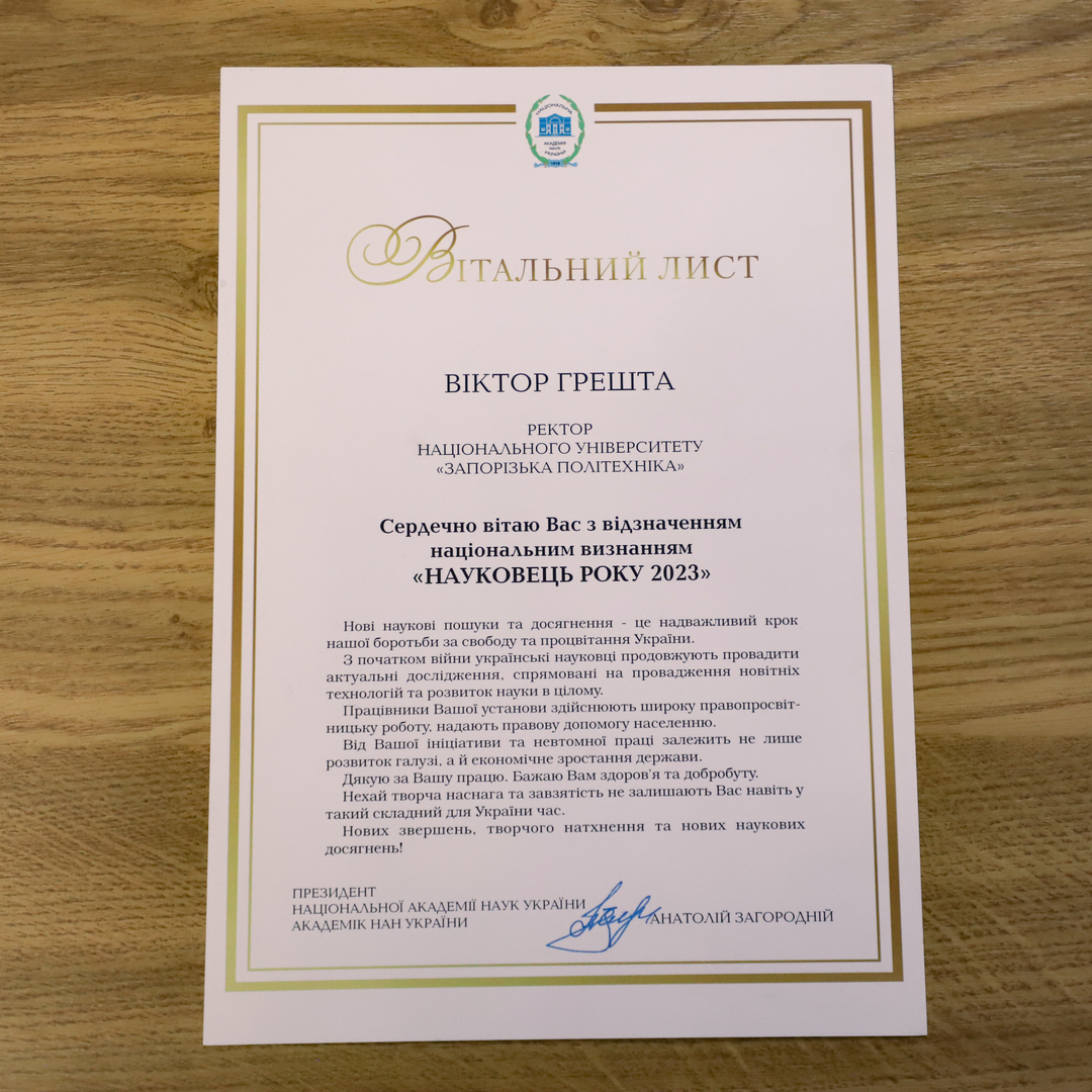 У цьому році ректор Національного університету «Запорізька політехніка» Віктор Грешта, завідувачка кафедри фізичної терапії та ерготерапії Ольга Ковальова та доцент кафедри іноземної філології та перекладу Юрій Полєжаєв відзначені національним визнанням «Науковець року 2023».