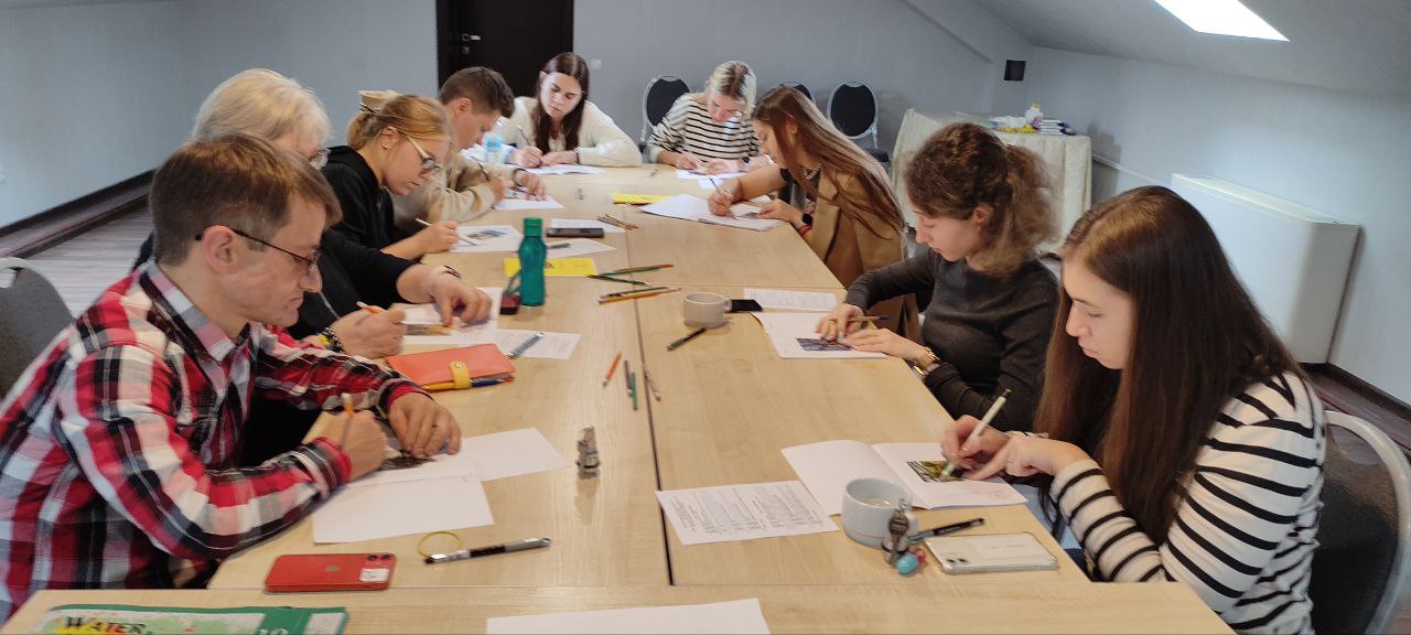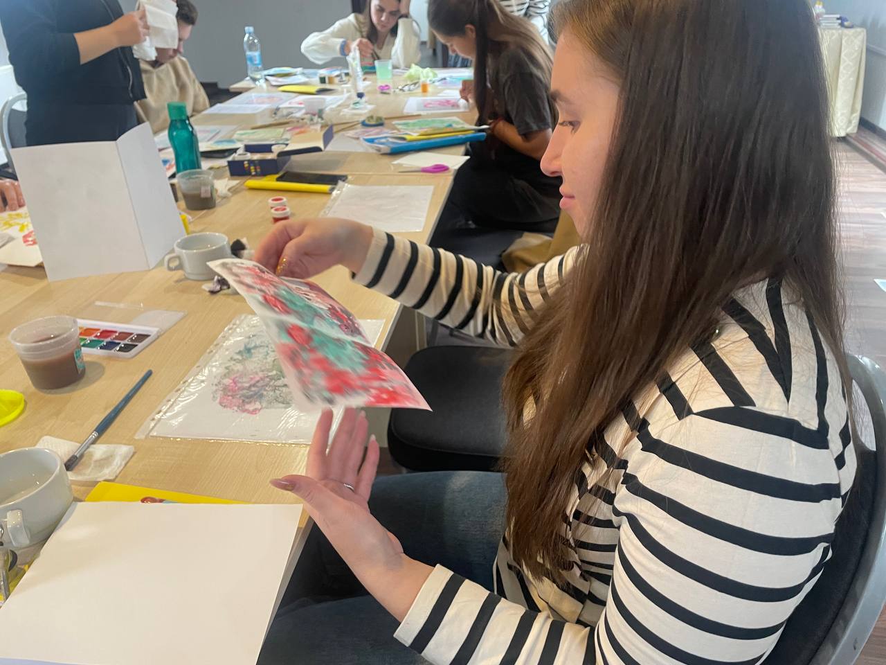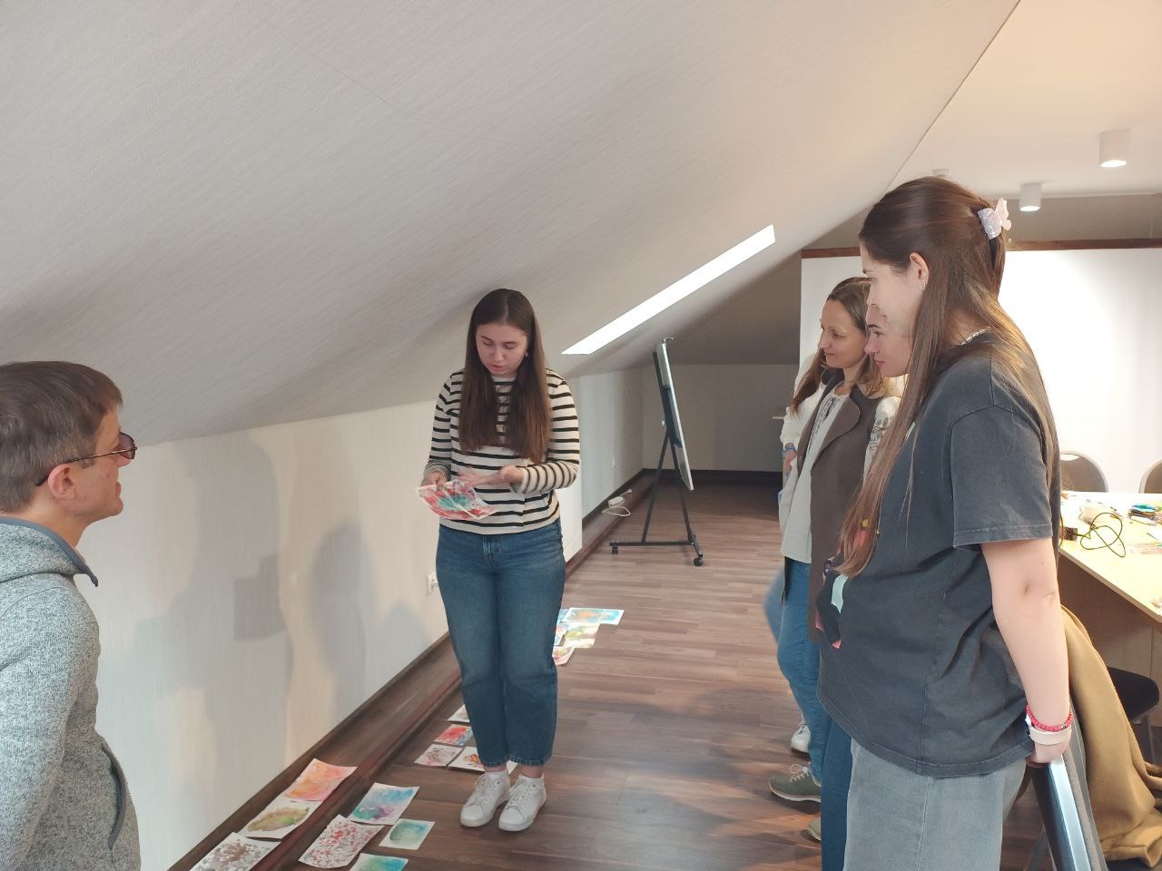 Під час семінару психологи та волонтери проєкту обговорили програму та організаційні питання, отримали досвід роботи з різноманітними арттерапевтичними техніками (акватипія, вовняний живопис, казка-вітраж з різноколірної кальки, насипна мандала).