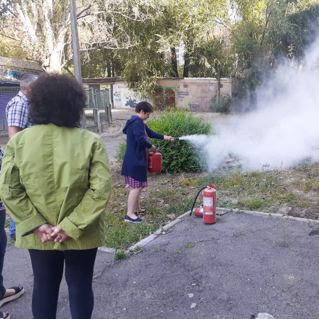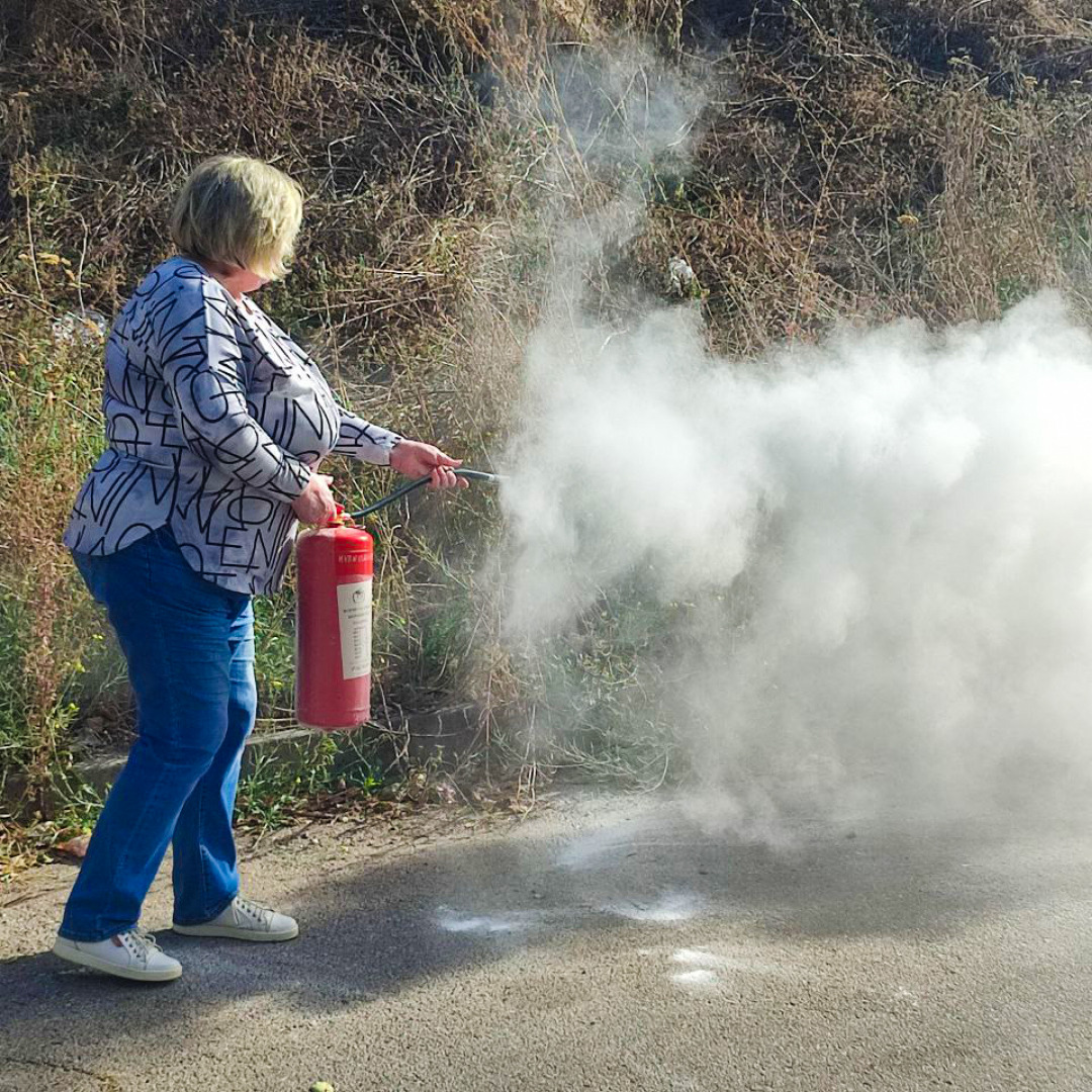 Під час навчання працівники не тільки засвоїли теоретичну частину, але й мали змогу спробувати себе у надзвичайних ситуаціях та практично використати засоби з пожежогасіння.