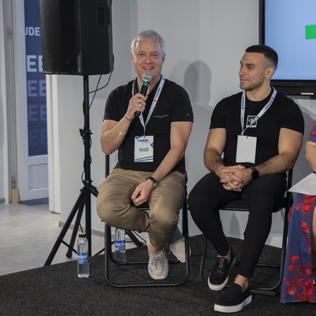 У панельній дискусії взяли участь спікери Олексій Пучков, Павло Рудика, Діана Токмань, Гайк Нікогосян та Євген Семенов, а також спеціально запрошені гості — спікерка грудневого «Career Forum. Бізнес» директорка CITY MALL Вардуі Батракова та SMM-менеджер «ЯКТИТАМ» Ілля Калініченко!