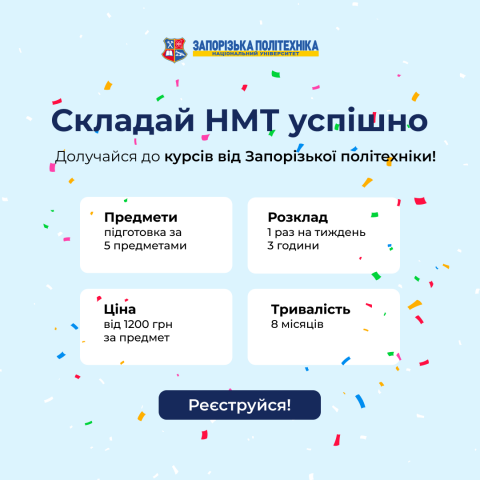 Якщо хочеш створити якісний розклад підготовки до Національного мультипредметного тесту, реєструйся на підготовчі курси від Запорізької політехніки.