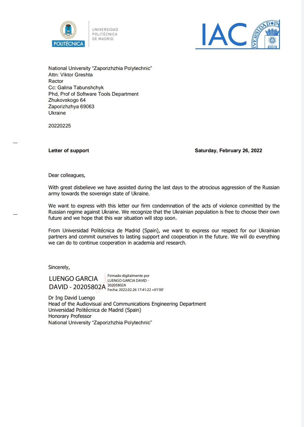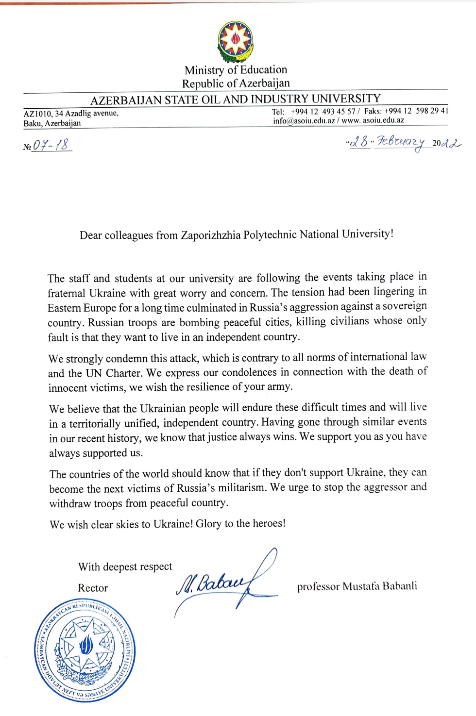 Минуло майже два тижні із запровадження воєнного стану та початку бойових дій на території нашої країни. Ці дні об'єднали всіх нас довкола єдиної мети - вистояти та перемогти. Я хочу подякувати колективу та студентству Національного університету «Запорізька політехніка» за те, що у такі складні часи Ви, перш за все, думаєте про потреби університету та країни.