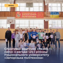 Запрошуємо студентів університету та фахових коледжів взяти участь у спортивних змаганнях «Разом — сила» з нагоди 124-ї річниці Національного університету «Запорізька політехніка».