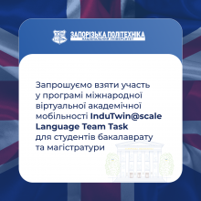 Запрошуємо студентів бакалаврату та магістратури взяти участь в осінньому семестрі 2025–2026 навчального року у програмі віртуальної кредитної академічної мобільності з розвитку та покращення інтернаціональних і мовних (англійська мова) компетентностей InduTwin@scale Language Team Task на базі Дортмундського університету прикладних наук та мистецтв (Дортмунд, Німеччина).