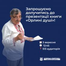3 вересня в Запорізькій політехніці відбулася презентація книги «Орлині душі» українського письменника, а також члена Національної спілки письменників та журналістів України Поляна-Пилипа Юрика. Збірка поезій присвячена темі російсько-української війни.