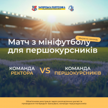 Запрошуємо першокурсників на знаковий турнір з мініфутболу, який проходитиме у 125 річницю НУ «Запорізька політехніка». Найцікавіша деталь гри — команда першокурсників змагатиметься з командою ректора Запорізької політехніки!