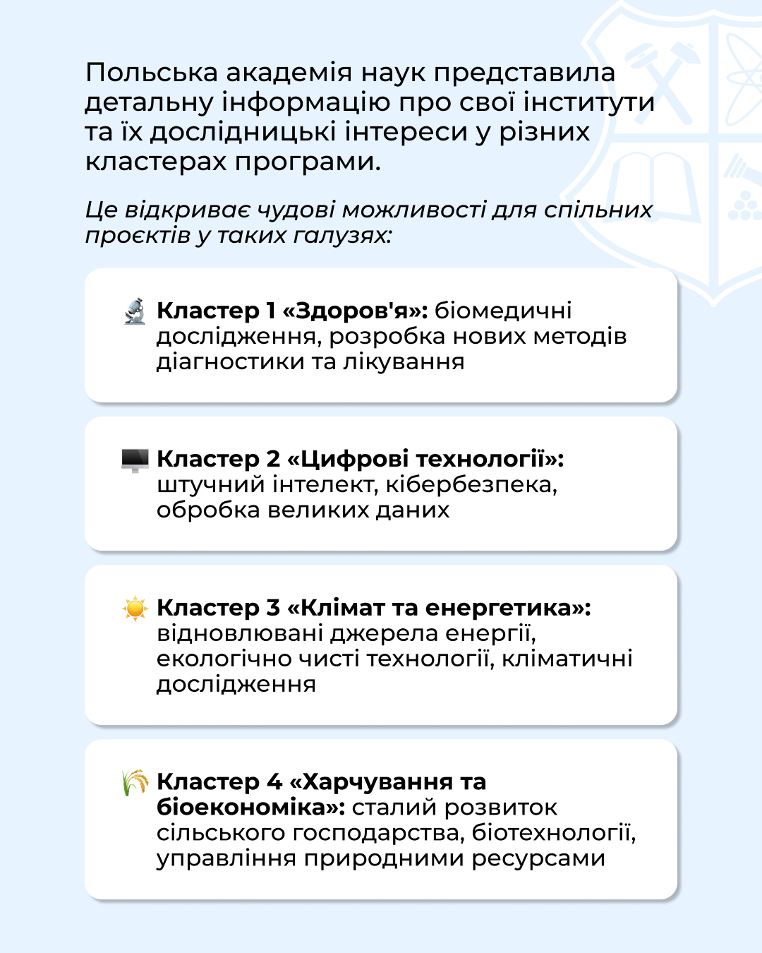 Раді повідомити про нові перспективні напрями міжнародної співпраці з провідними польськими науковими інститутами в межах програми «Горизонт Європа».