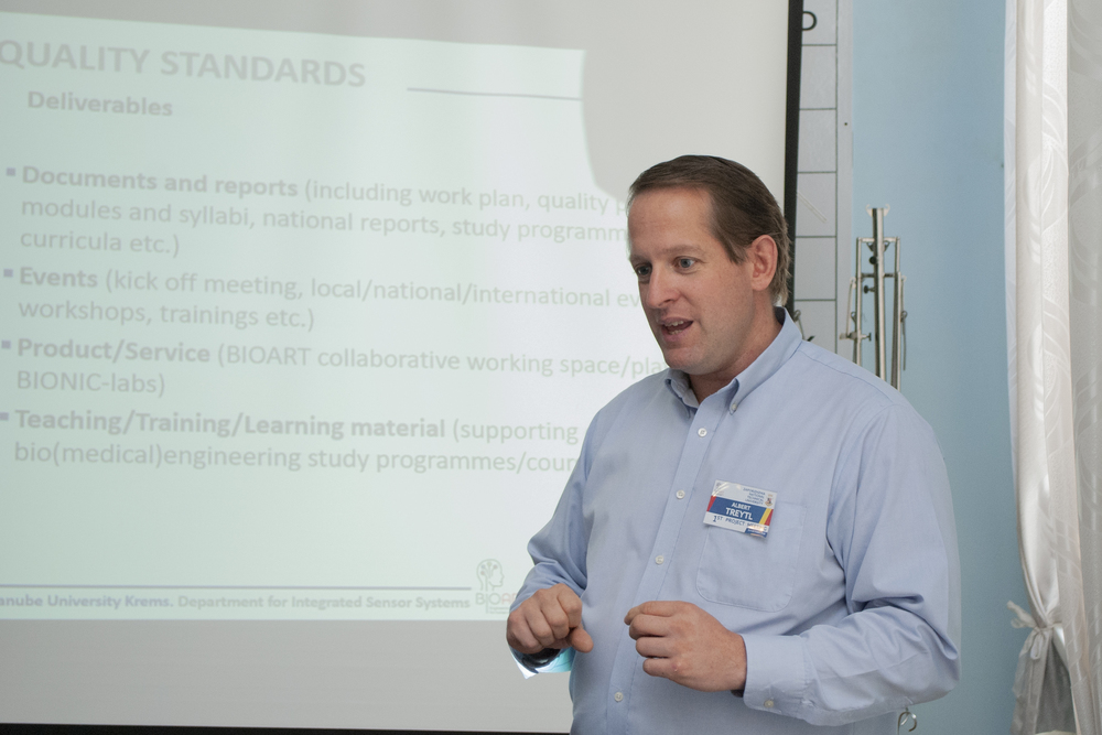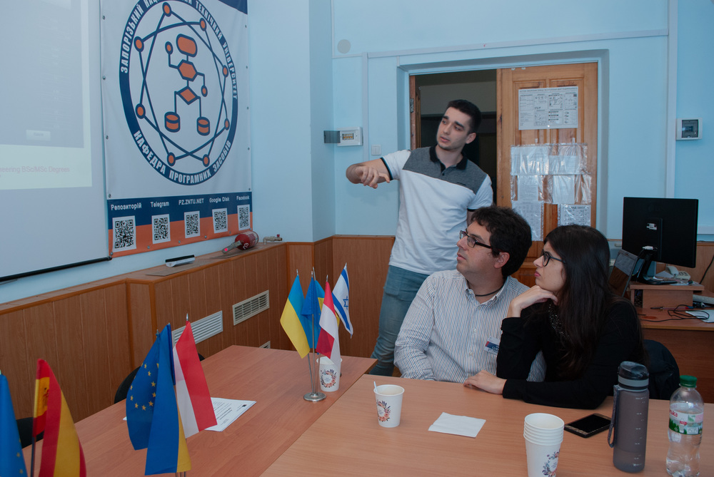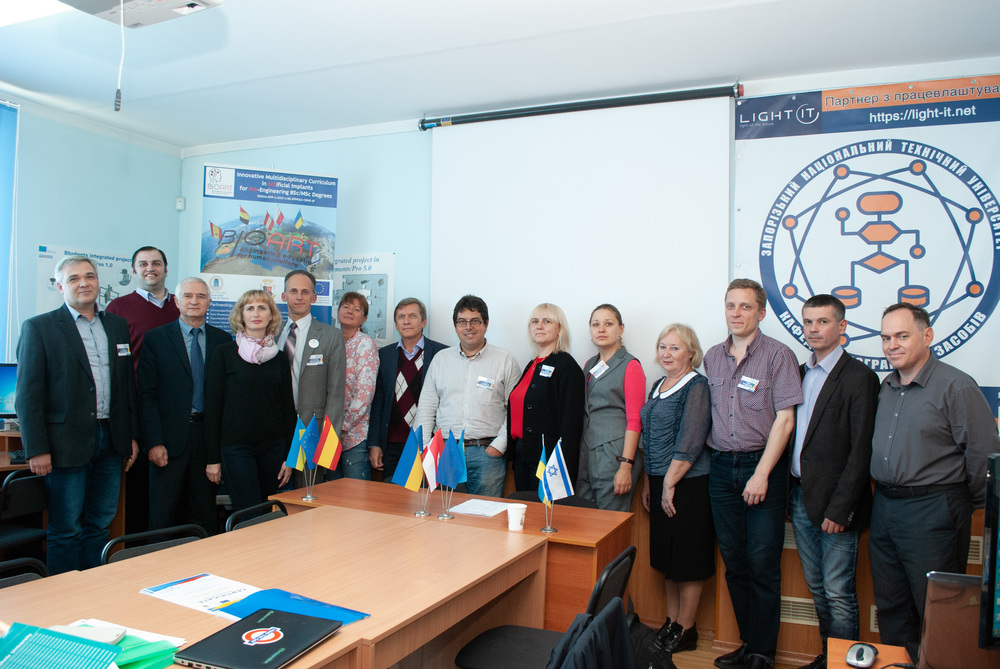 Представники одинадцяти вищих навчальних закладів з Іспанії, Бельгії, Австрії, Польщі, України та Ізраїлю, а також Державної установи “Інститут патології хребта та суглобів імені М.І.Ситенка НАМНУ” (м. Харків, Україна) обмінювались досвідом з аналізу вимог ринку праці та особливостей законодавства в галузі вищої освіти з метою розробки нової навчальної програми. Оскільки відмінною рисою сучасних навчальних програм є мультидисциплінарність, то в ЗНТУ до розробки нової інноваційної програми залучені три кафедри – кафедра радіотехніки та телекомунікацій (зав. каф., к.т.н, доцент С.В. Морщавка, аспірант Г.В. Мороз), кафедра програмних засобів (зав. каф., д.т.н., проф. С.О. Субботін, к.т.н., доцент, Г.В. Табунщик, к.т.н., доцент А.В. Пархоменко, аспірант А.В. Туленков) та кафедра фізичного матеріалознавства (д.т.н, проф. В.А. Шаломєєв, к.т.н., доцент О.В. Климов, аспірант Айкін М. Д.).