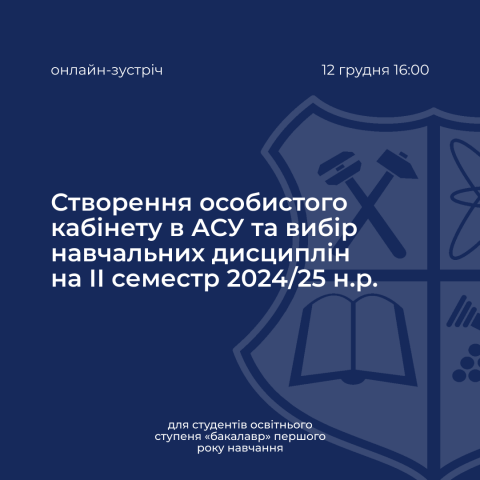 Запрошуємо всіх долучитися до онлайн-зустрічі про створення особистого кабінету в АСУ та вибір навчальних дисциплін на ІІ семестр 2024/25 н.р.