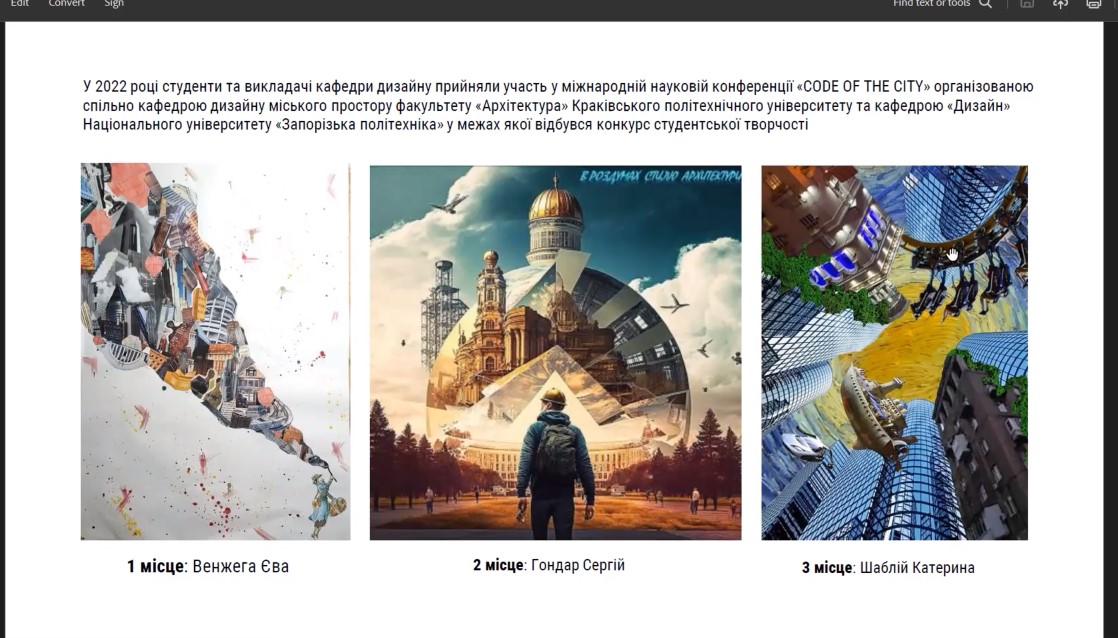 30 листопада в межах діяльності Асоціації Азово-чорноморських університетів відбулося засідання Міжкафедрального науково-методичного семінару на тему: «Особливості підготовки бакалаврів за спеціальністю 022 «Дизайн» у воєнний час», в якому взяли участь проректори та викладачі Національного університету «Запорізька політехніка», Національного університету кораблебудування імені адмірала Макарова та Херсонського національного технічного університету.