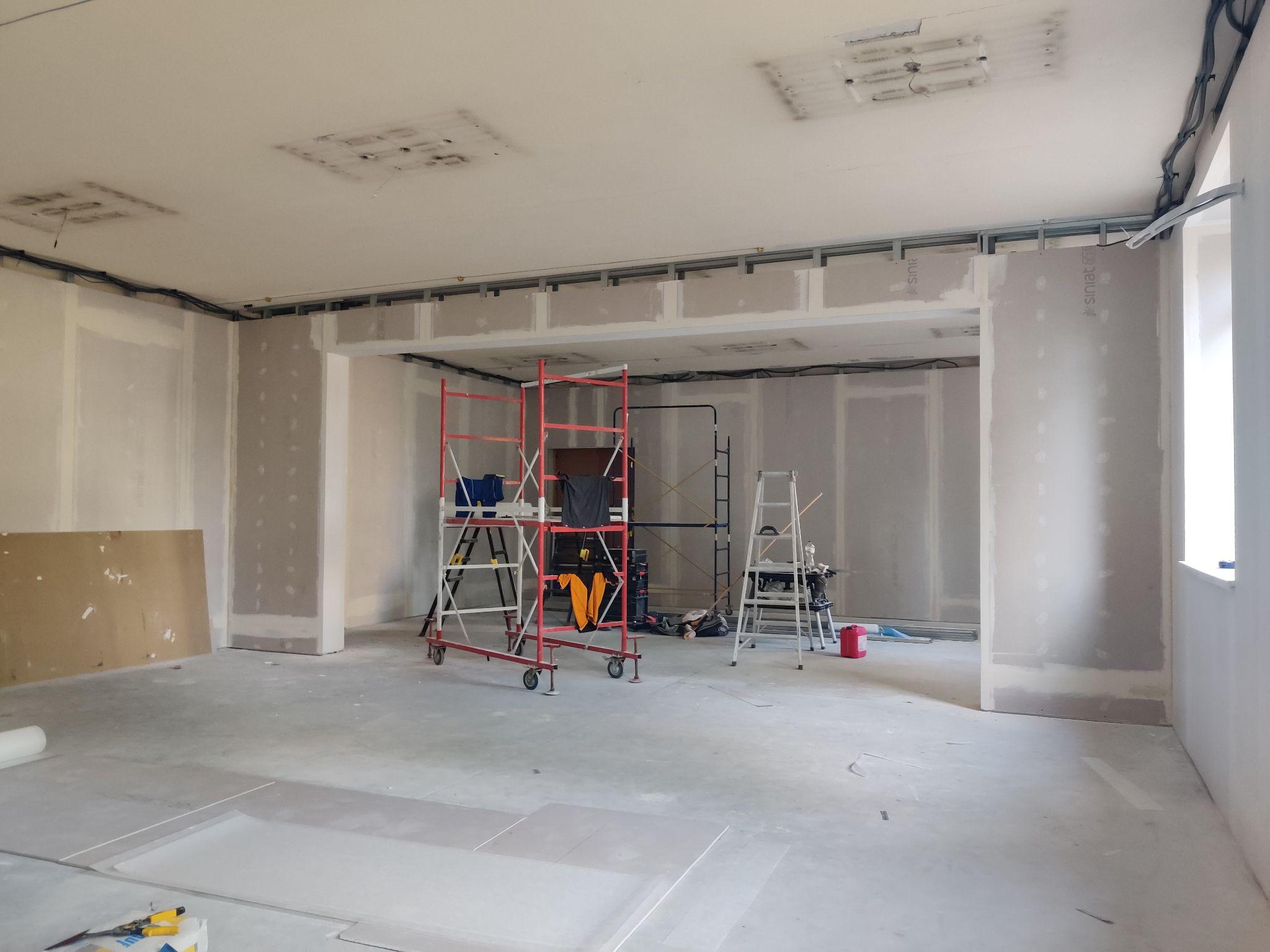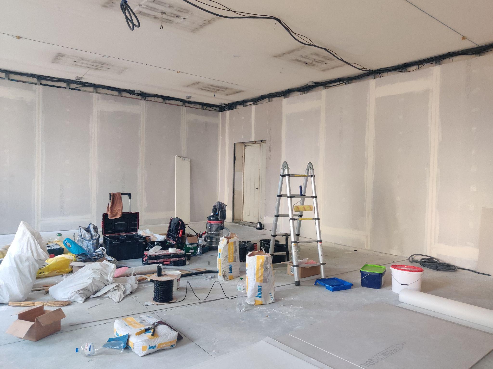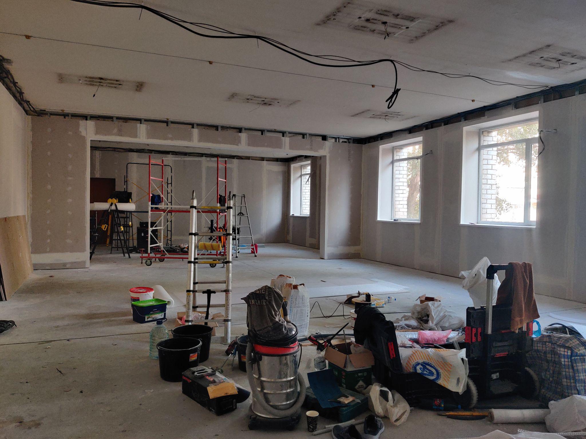In July and August, the following renovation works were carried out: floor screed and plasterboard panels on the walls were renewed, window sills were renewed, the heating system and electrical wiring were updated. By mid-September, the works on laying tiles on the floor, painting the walls, installing doors, acoustic cabins, functional furniture, etc. are scheduled to be completed.