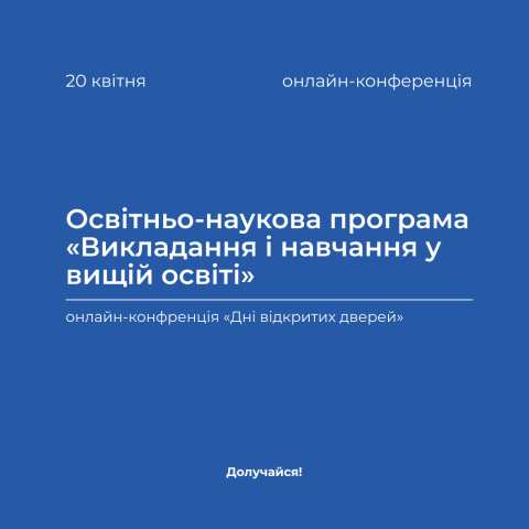 Освітньо-наукову програму «Викладання і навчання у вищій освіті» буде презентовано під час «Днів відкритих дверей» (онлайн-формат) 20 квітня 2023 року.