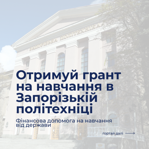 НУ «Запорізька політехніка» — перший серед ЗВО Запорізької області, що уклав угоду з МОН України про участь в експериментальному проєкті щодо державних грантів на здобуття вищої освіти.