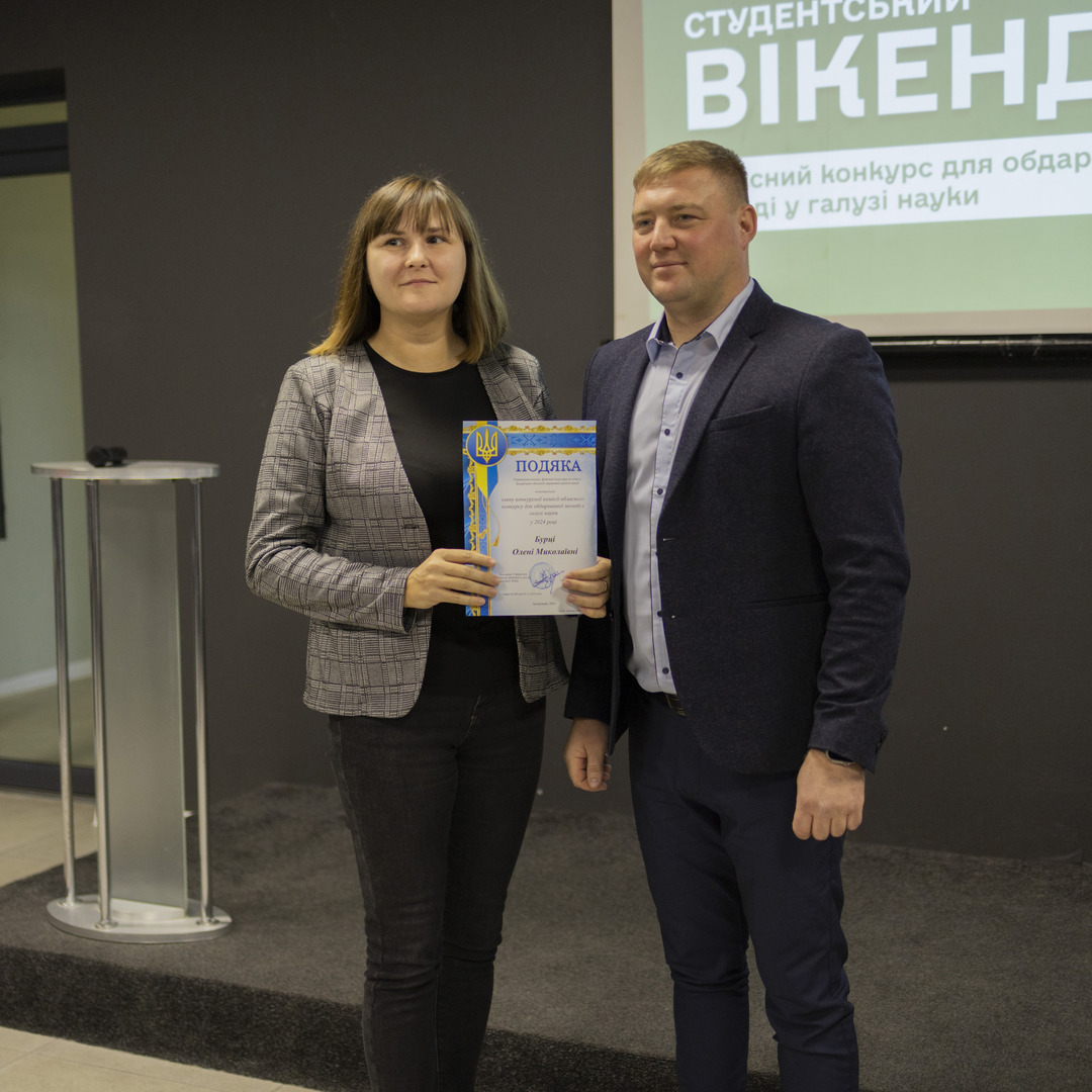 - Анастасія Гайдукова, студентка групи СН–214м — переможниця серед студентів у номінації «Філософські та соціологічні науки», науковий керівник — завідувач кафедри соціальної роботи Сергій Щербина