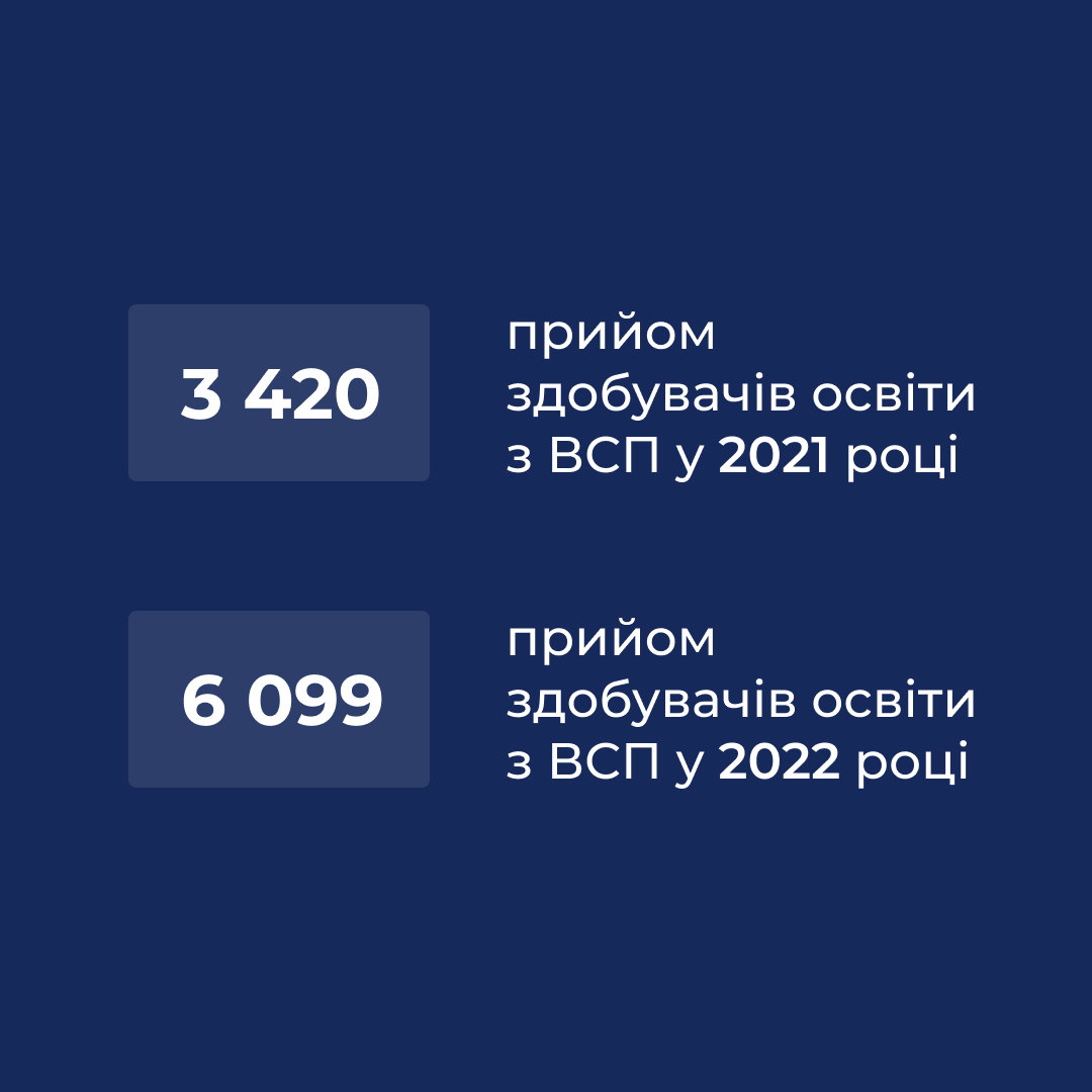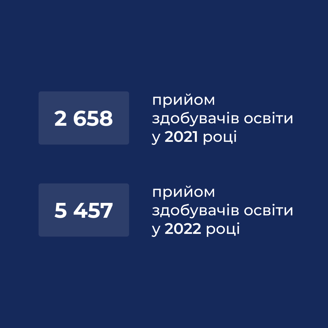 Загальний прийом з урахуванням вступників коледжів університету в 2022 році становить 6099, що у порівнянні з 2021 роком підтверджує приріст на 78%.
