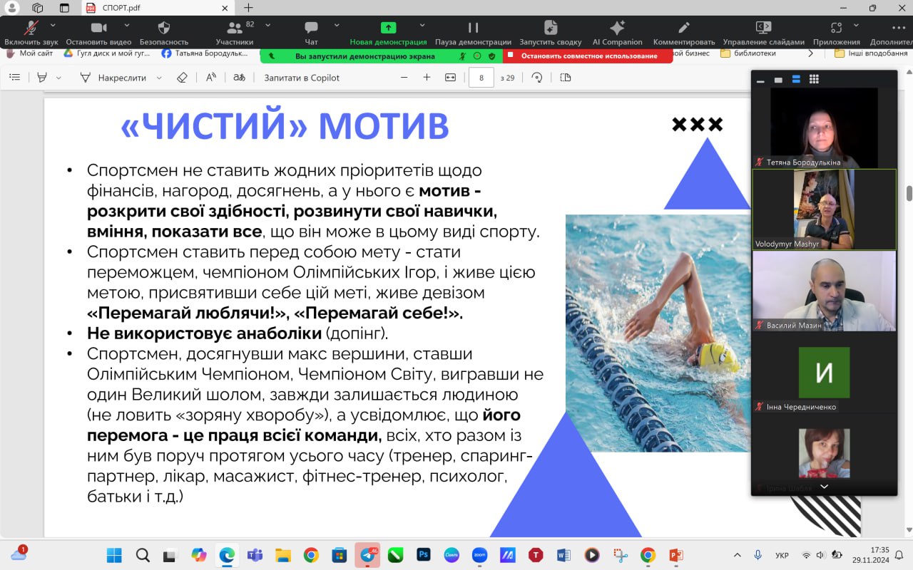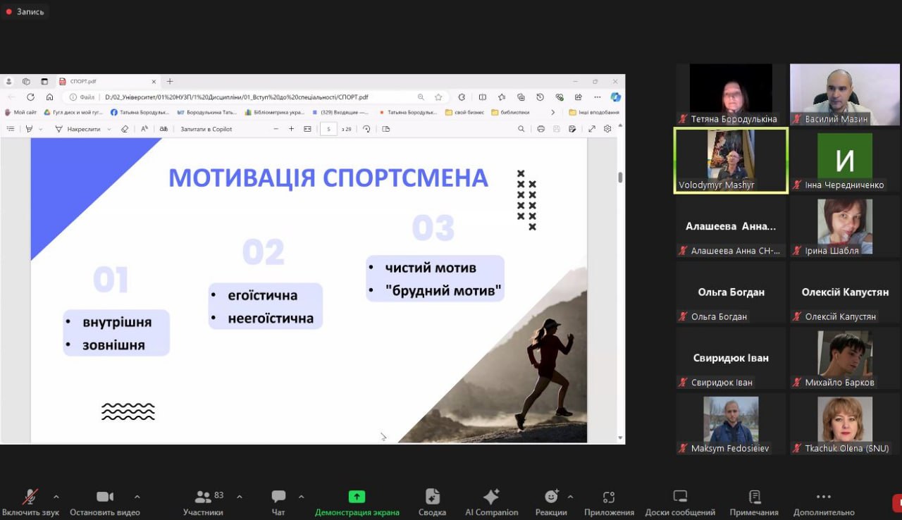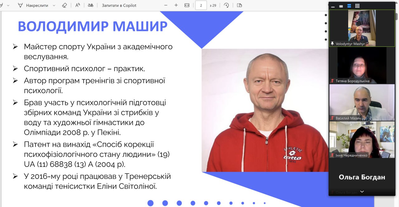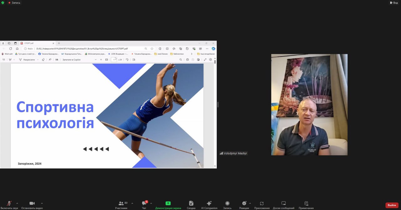 29 листопада кафедра психології факультету соціальних наук Національного університету «Запорізька політехніка» організувала та провела гостьову онлайн-лекцію на тему «Про психологію спортсменів і роботу спортивного психолога».