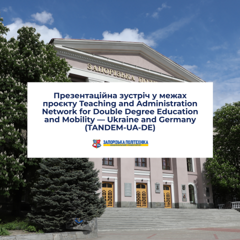 23 липня представники НУ «Запорізька політехніка» взяли участь у першій презентаційній зустрічі у межах проєкту Teaching and Administration Network for Double Degree Education and Mobility — Ukraine and Germany (TANDEM-UA-DE). Цей чотирирічний проєкт під егідою DAAD створює партнерську мережу між Ostbayerische Technische Hochschule Amberg-Weiden та шістьма українськими університетами для розвитку подвійної англомовної програми з цифрових технологій та менеджменту, академічної мобільності та підготовки фахівців нового покоління.