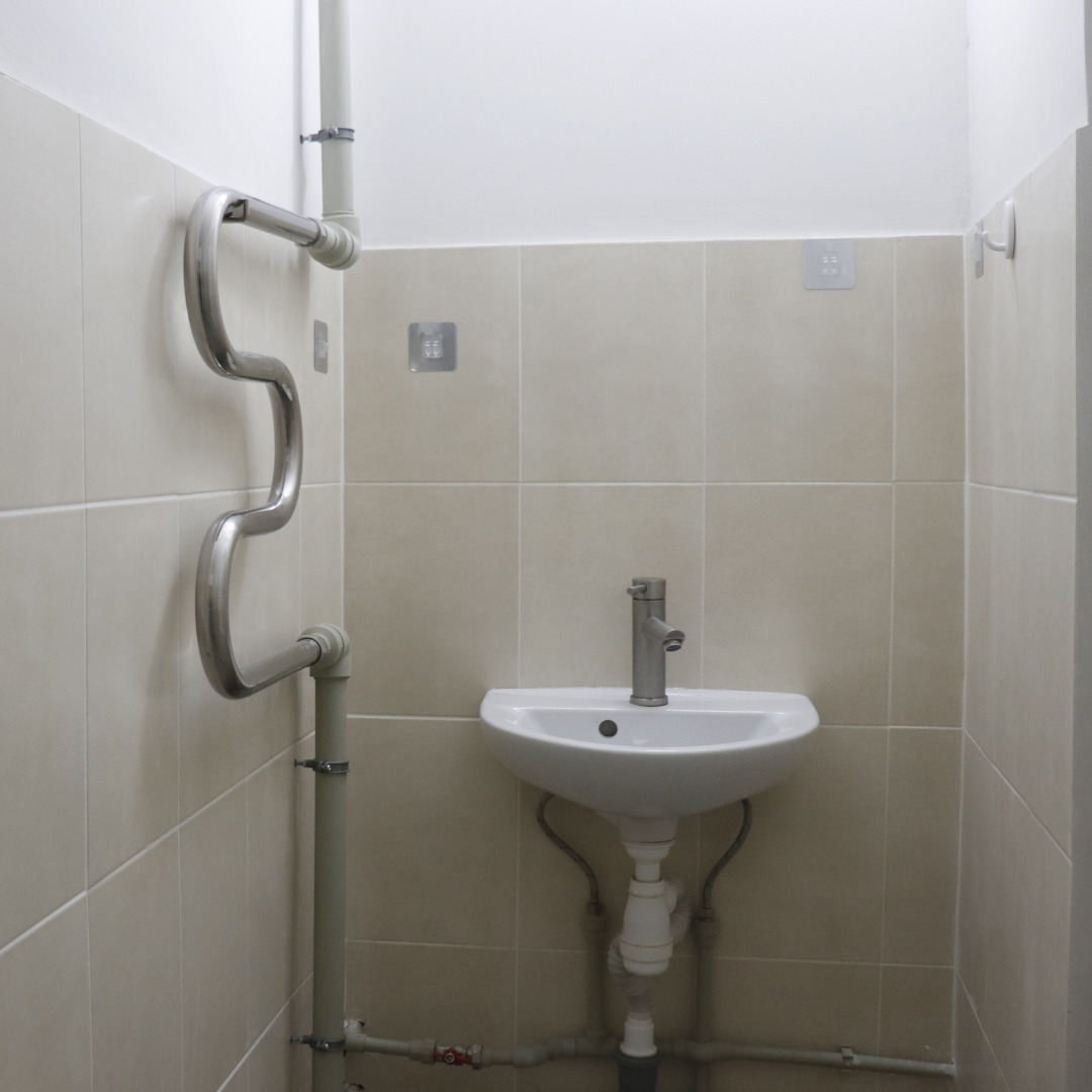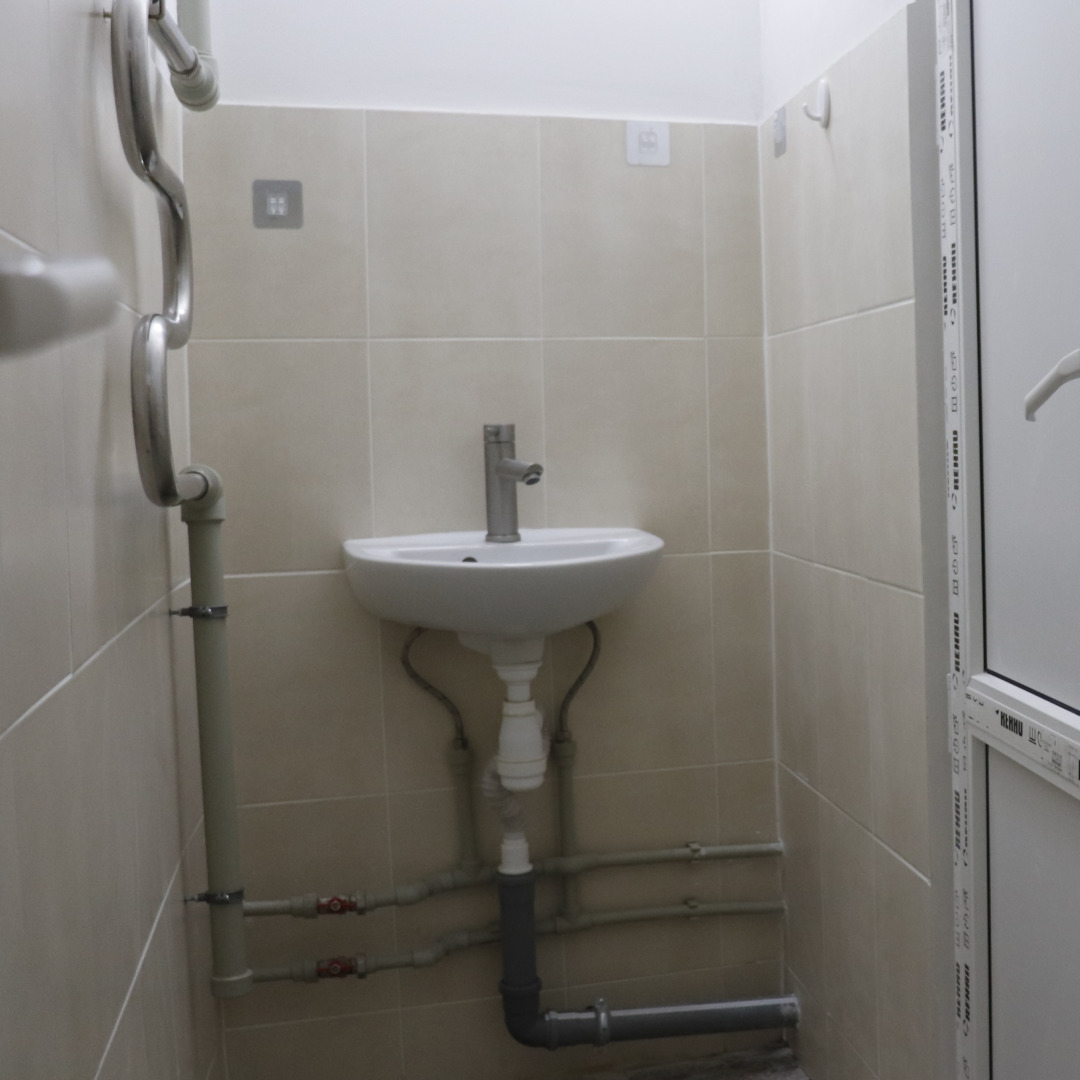 Виконані ремонтні роботи у 9 санітарних кімнатах загального користування: укладено кахель, виконано фарбування стін, замінено унітази, раковини та піддони в душових, встановлено 27 вхідних металопластикових дверей до душових і туалетів, змонтовані нові світильники та замінено всю сантехніку.