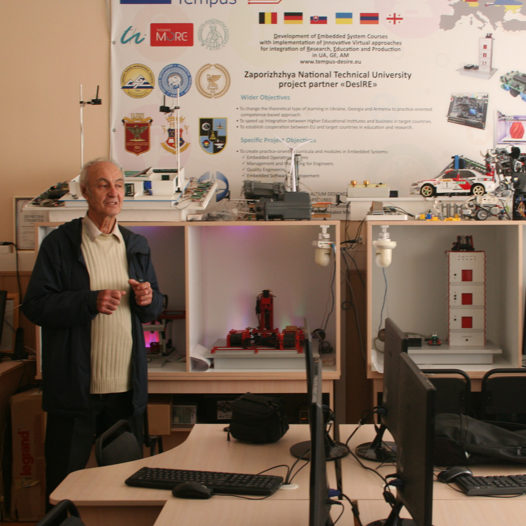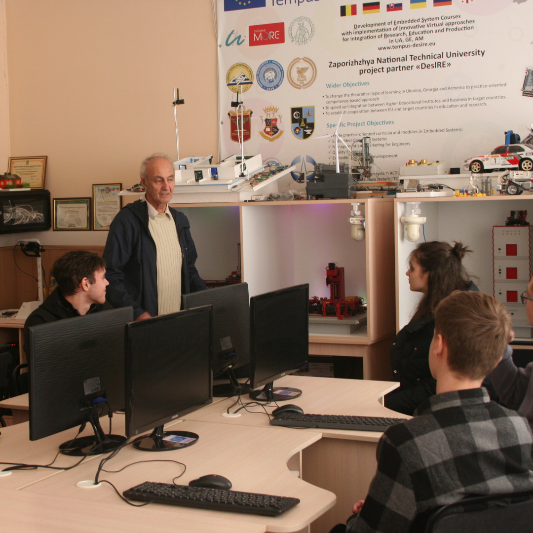 Професор Михайло Поляков провів практичне заняття з електроніки та програмування мікроконтролерів і створення програм керування елементами лабораторного комплексу Smart EA кафедри електричних та електронних апаратів. У цьому йому допомагали студенти старших курсів.
