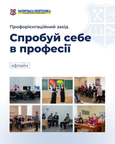 Національний університет «Запорізька політехніка» запрошує старшокласників та студентів коледжів взяти участь у відкритому профорієнтаційному заході «Спробуй себе в професії»!