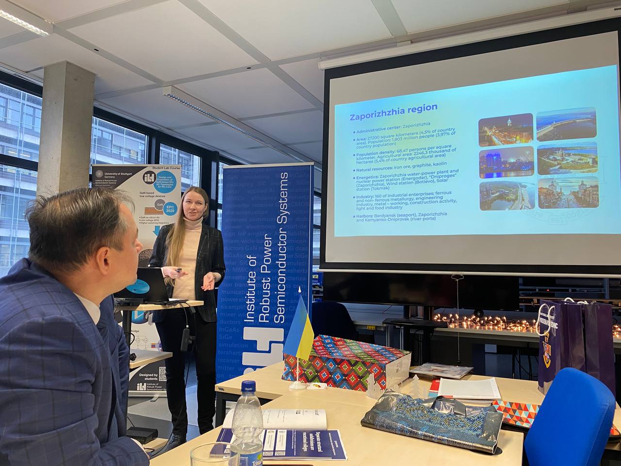 Представники Національного університету «Запорізька політехніка», Національного технічного університету України «Львівська політехніка» та Штутгартського університету презентували свої університети, напрацювання в проєктній діяльності, наукові інтереси та розробки в галузі силових електронних систем.