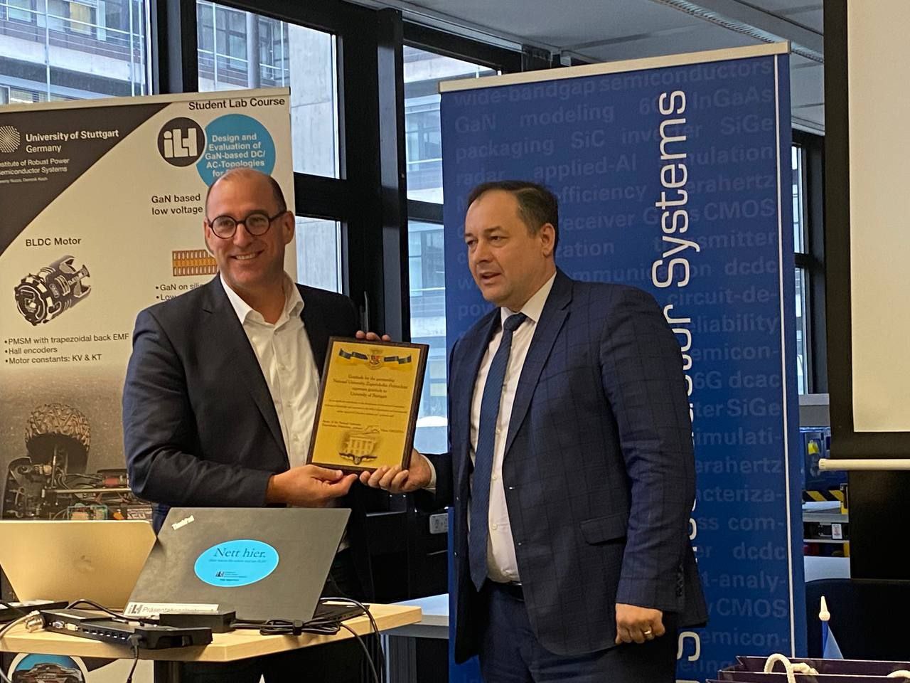 Під час проведення презентацій університетів професору Інгмару Калфасу було вручено диплом-подяку від ректора НУ «Запорізька політехніка» Віктора Грешти за посилення співпраці зі Штудгардським університетом, за значний внесок у розвиток міжнародного співробітництва, за сприяння обміну знаннями та досвідом у сфері діджиталізації й інтернаціоналізації, за підтримку українських студентів і викладачів.