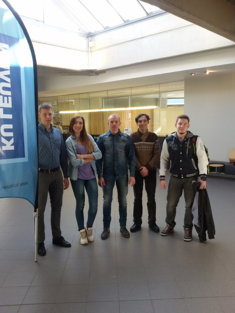 Олексій Бондаренко, група Е-311м, кафедра електроприводу та автоматизації, спеціальність «Електропривод та автоматизація». Напрямок досліджень – робототехніка, під керівництвом Вільма Аббелоо (ing. Wilm Abbeloos).