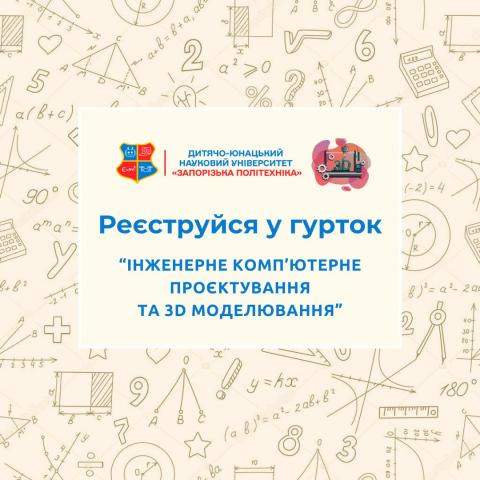 Ти майбутній абітурієнт і мрієш про університет? Запрошуємо тебе на заняття в гурток «Інженерне комп'ютерне проєктування та 3D-моделювання» Дитячо-юнацького наукового університету!