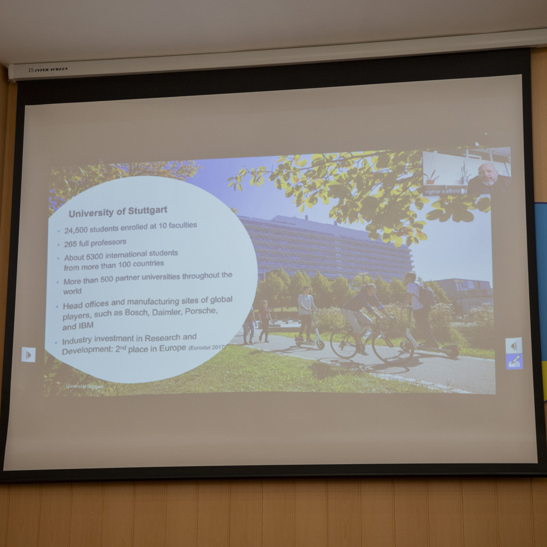 Зі сторони Штутгартського університету на зустрічі були присутні декан, завідувач кафедри електротехніки та інформаційних технологій Інституту електропередачі та високовольтної техніки Prof. Dr. Krzysztof Rudion, студентський декан факультету електротехніки та інформаційних технологій, директор Інституту надійних силових напівпровідникових систем Prof. Dr. Ingmar Kallfass, завідувач кафедри електротехніки та інформаційних технологій Dr. Markus Gaida, голова міжнародного відділу Erasmus кафедри електротехніки та інформаційних технологій Ms. Virginie Herbasch.
