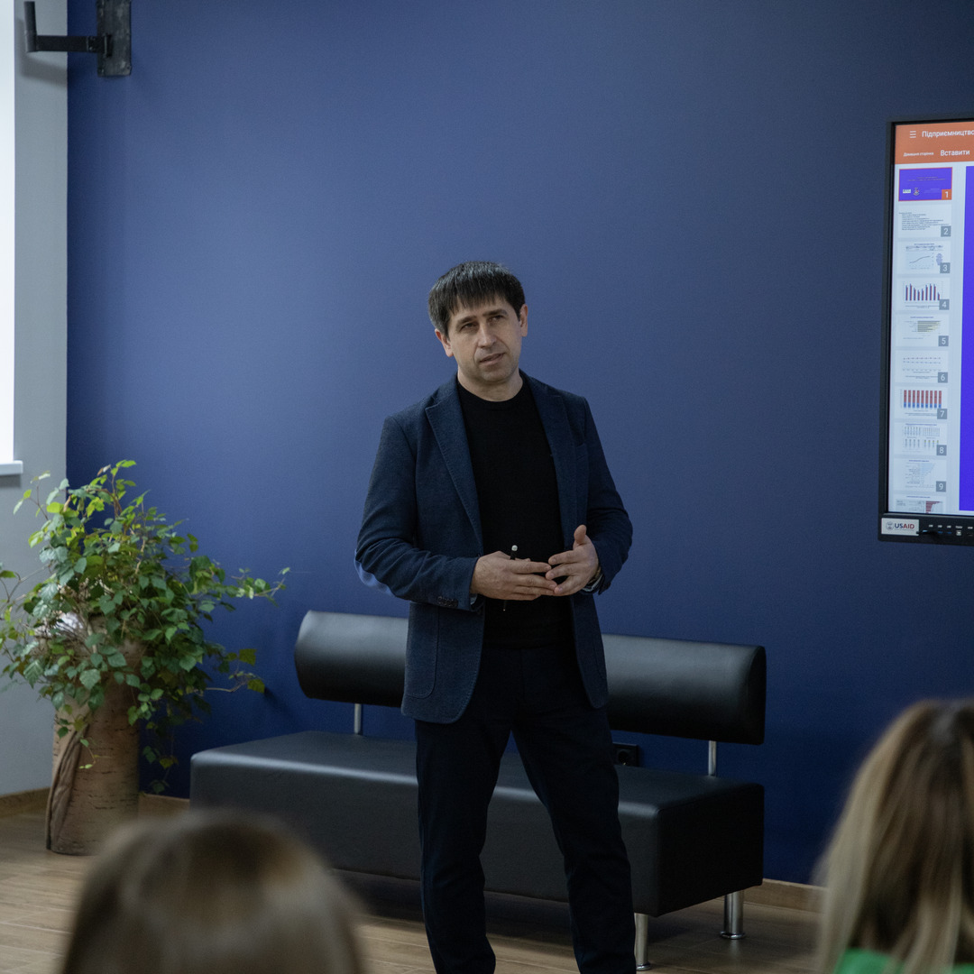 Ми розпочали з лекції від професора Андрія Карпенка, де вчителі вчилися використовувати практичні методи інтеграції підприємницьких підходів у навчальний процес та створення умов для розвитку бізнес-ініціатив учнів. Особливу увагу на тренінгу було приділено основам проєктного менеджменту: плануванню, тайм-менеджменту та ресурсному забезпеченню.