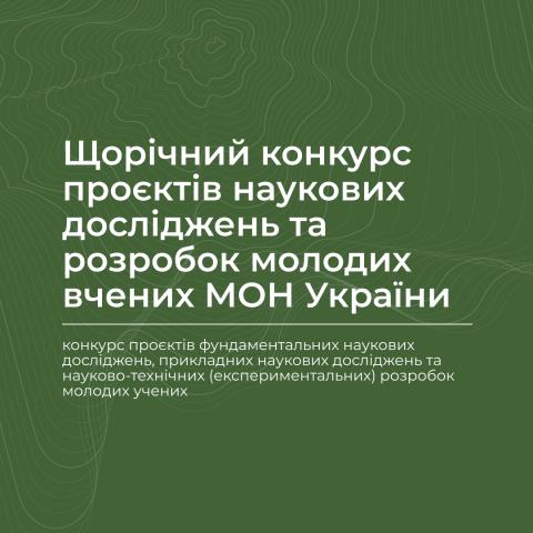 Міністерство освіти і науки України оголосило щорічний конкурс проєктів фундаментальних наукових досліджень, прикладних наукових досліджень та науково-технічних (експериментальних) розробок молодих учених.