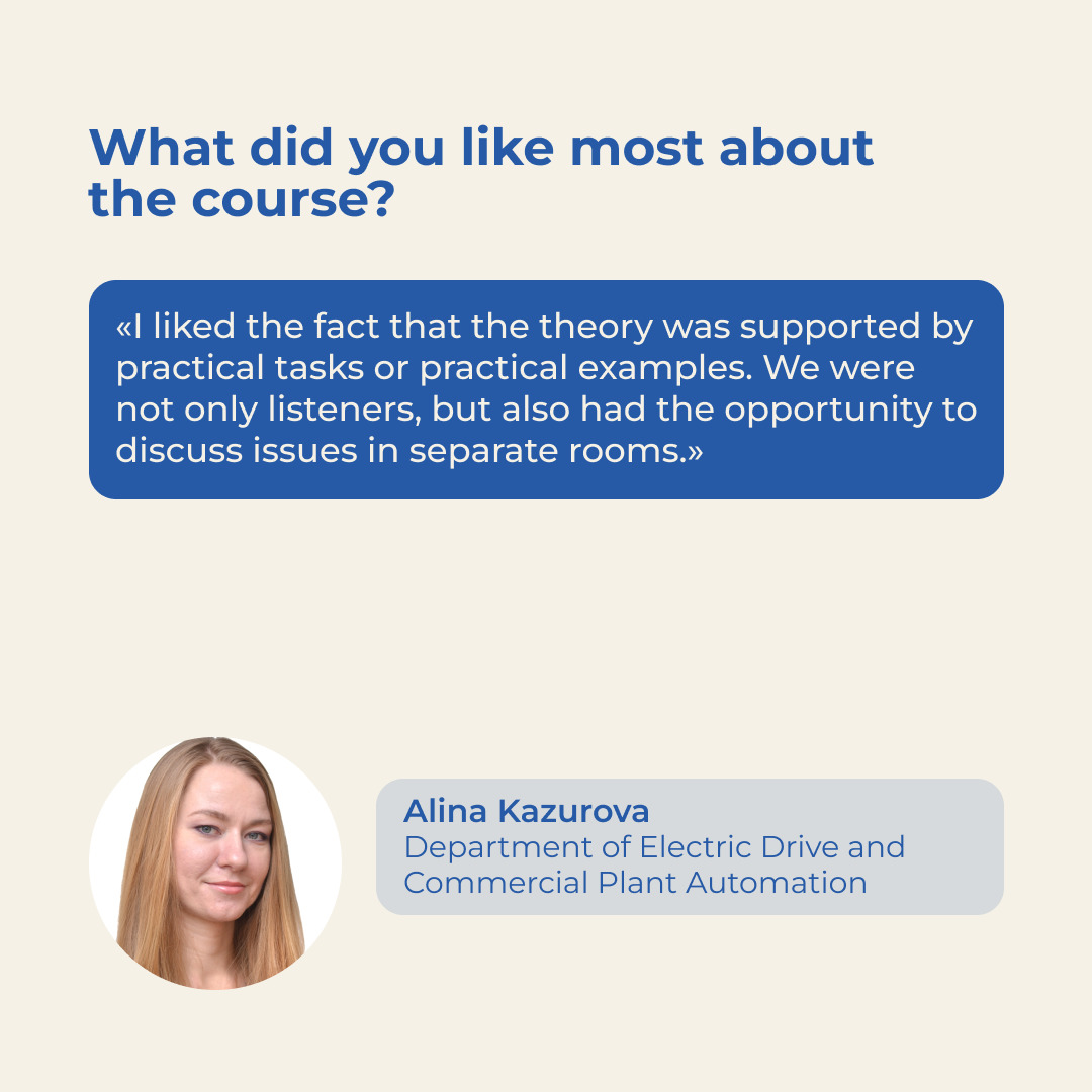 Alina Kazurova, Department of Electric Drive and Commercial Plant Automation