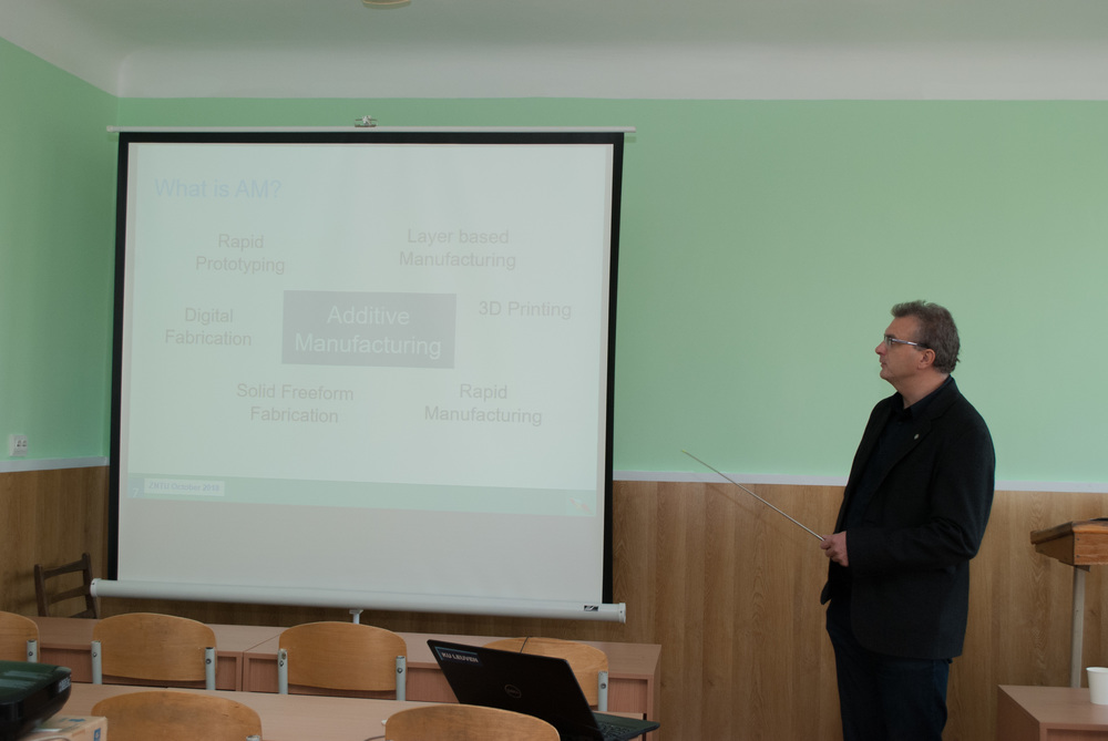 З 29 жовтня по 2 листопада в Запорізькому національному технічному університеті професор Католицького Університету Льовена (Бельгія), почесний професор ЗНТУ Пітер Аррас провів лекції «Віртуальне прототипування», «3D принтінг» та «Світовий енергетичний баланс та автомобілізація: проблеми та перспективи» для студентів таких факультетів ЗНТУ: комп'ютерних наук і технологій, машинобудівного та автомобільного.