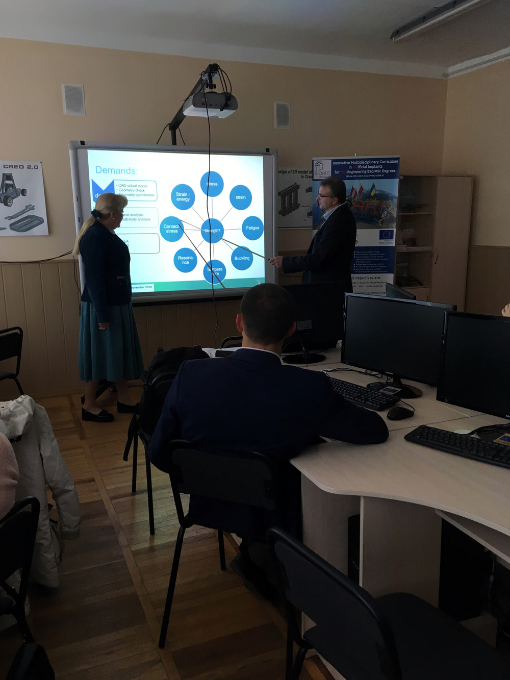 Також викладачі та наукові співробітники ЗНТУ разом із співробітниками АТ Мотор-Січ пройшли 2 листопада тренінг з використання методу скінченних елементів в CAD-системі CREO для розрахунків характеристик міцності штучних імплантів.