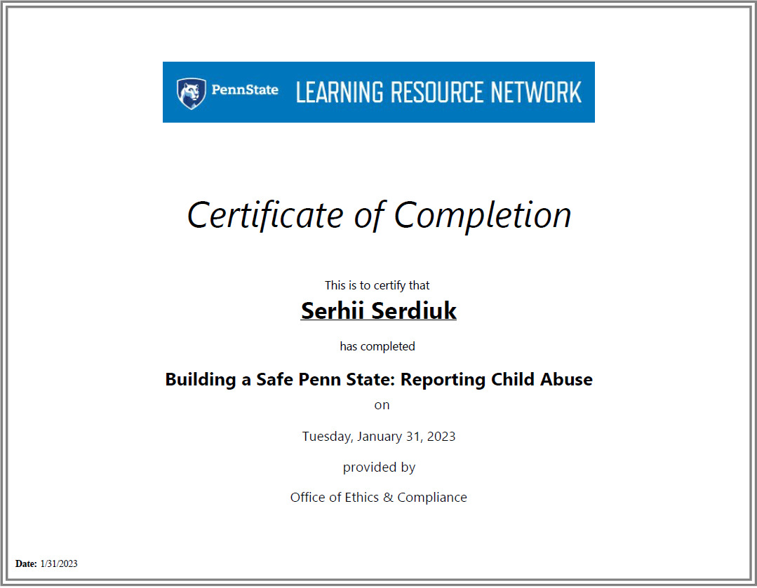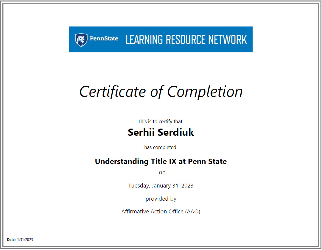 Наприкінці листопада 2022 року доцент кафедри програмних засобів НУ «Запорізька політехніка» Сергій Сердюк отримав можливість пройти стажування в Університеті штату Пенсільванія, США, в якому навчається близько 90 тис. студентів і який посідає 83 місце у світі у рейтингу QS World University Rankings за 2024 рік.