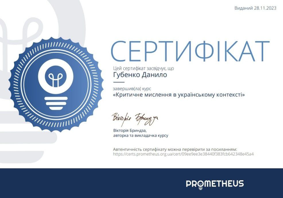пройшов КУРС "Критичне мислення в українському контексті"