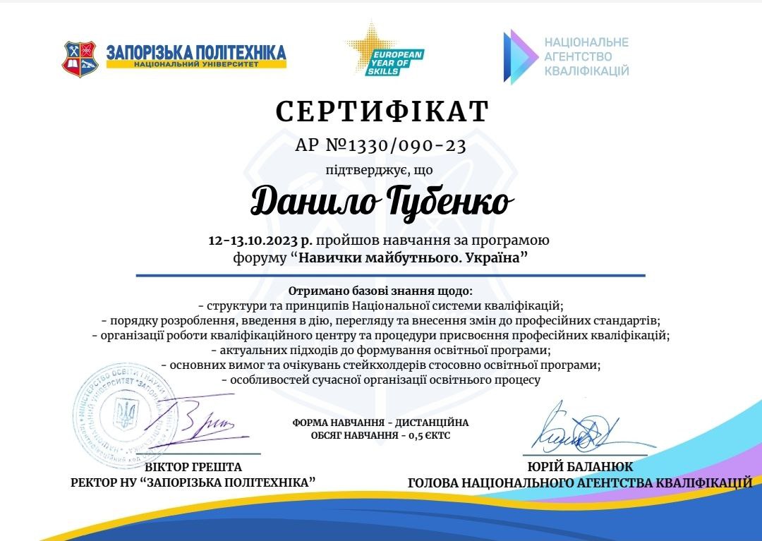 Студент 2 курсу МТЕ-512, Данило ГУБЕНКО