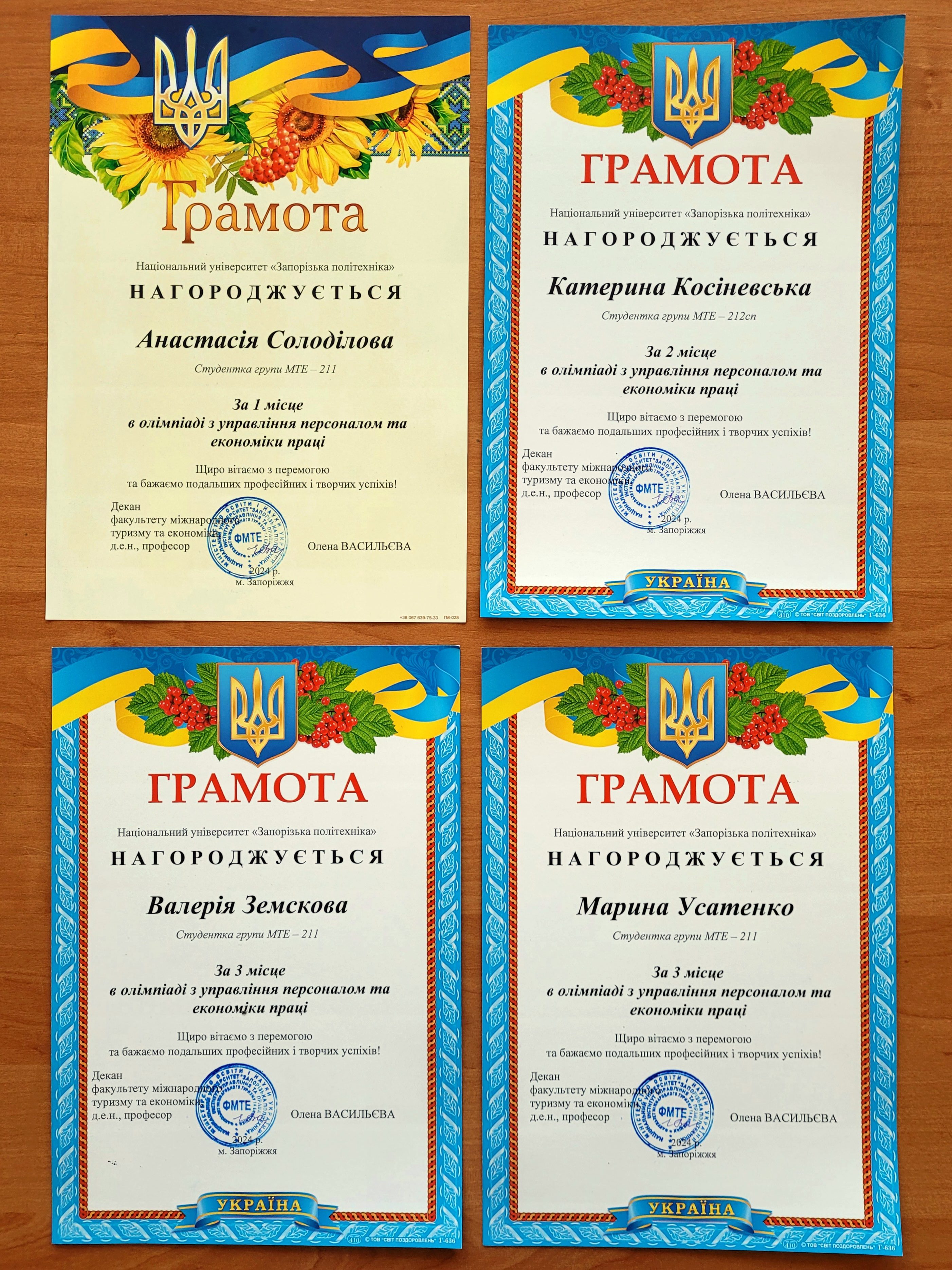 Земскову Валерію, гр. МТЕ-211 (3 місце) та Усатенко Марину, гр. МТЕ-212сп (3 місце).