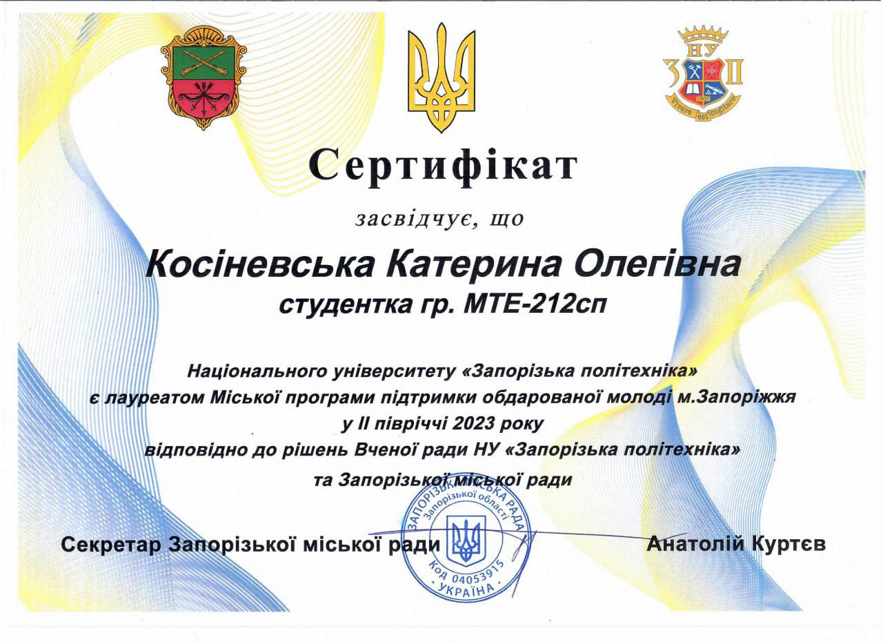 Косіневську Катерину, гр. МТЕ-212сп (2 місце),