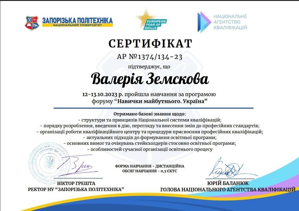 В жовтні 2022 року студентка 1 курсу магістратури, Анастасія Каніщева, пройшла курс для опанування спеціальності Project Management для використання навичок в подальшій роботі керівника проектами.