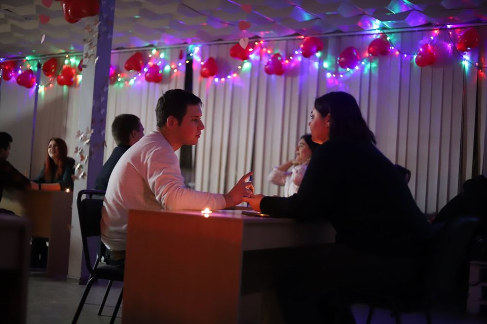 12 лютого о 18:00 у кафе Free Time запанувала затишна романтична атмосфера, вісім пар одночасно почали своє знайомство.
