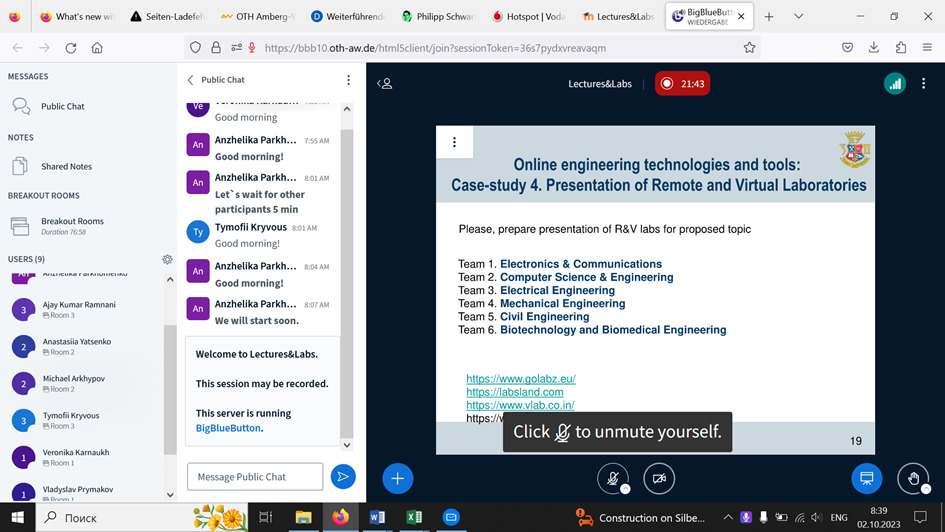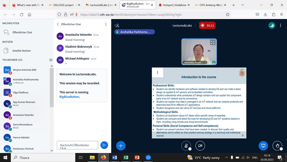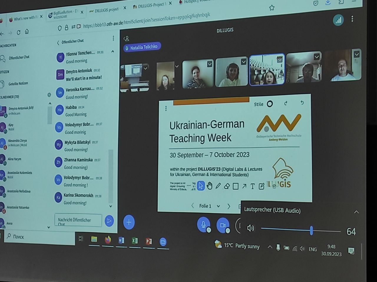 З 30 вересня в Східно-Баварському технічному університеті Амберг-Вайден у межах проєкту DILLUGIS стартувала Ukrainian-German Teaching Week. 6 викладачів трьох українських університетів (НУ «Запорізька політехніка», НТУУ «Київський політехнічний університет імені Ігоря Сікорського», Одеський державний аграрний університет) протягом восьми днів читатимуть лекції для німецьких та українських студентів у гібридному форматі.