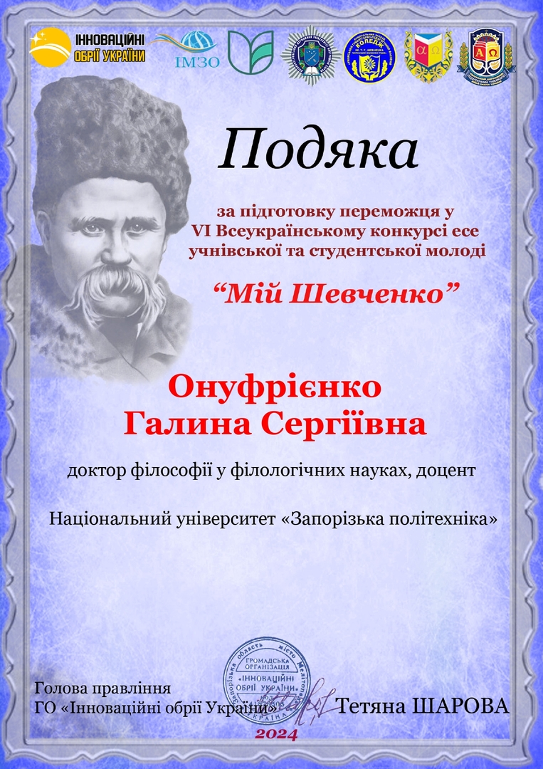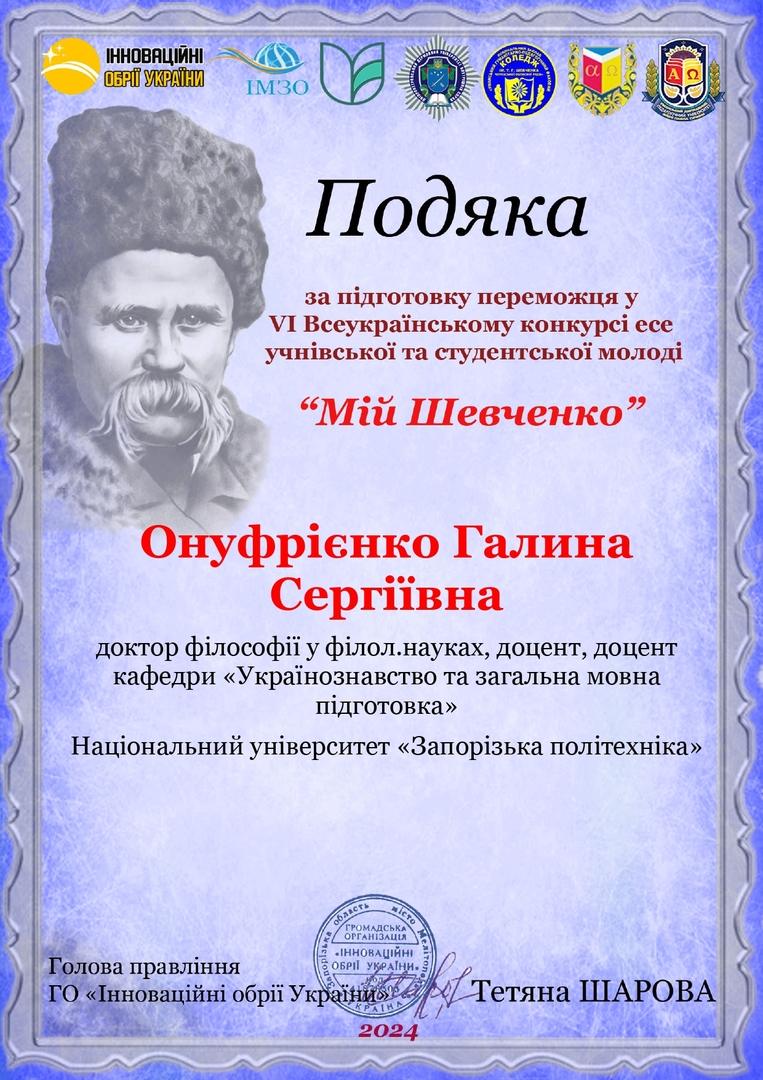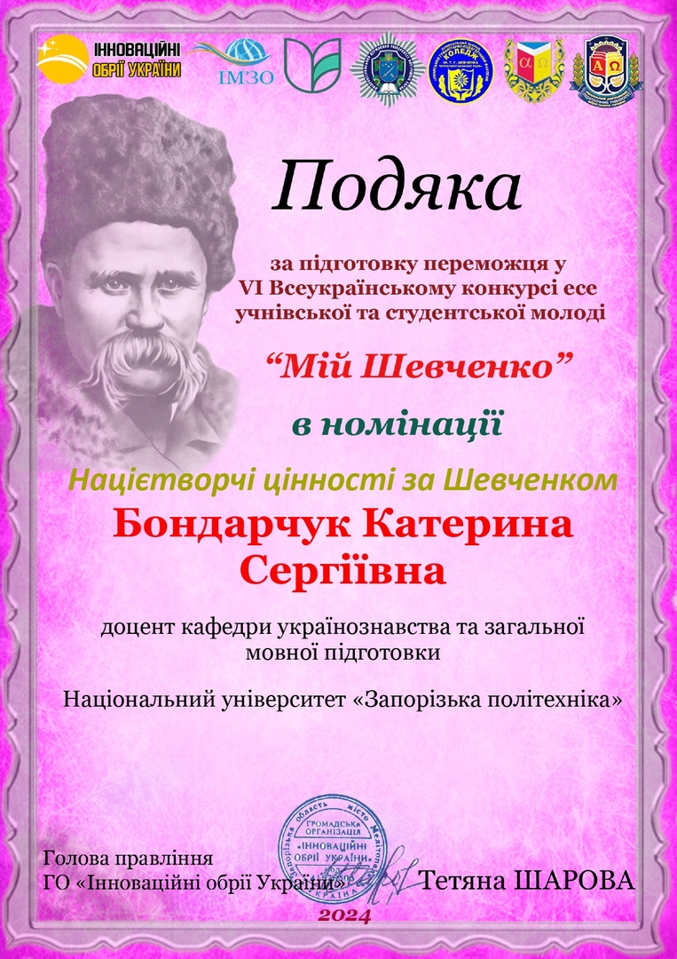 Всеукраїнський конкурс есе «Мій Шевченко» відбувається під патронатом «Інституту модернізації змісту освіти» спільно з Громадською організацією «Інноваційні обрії України».