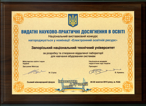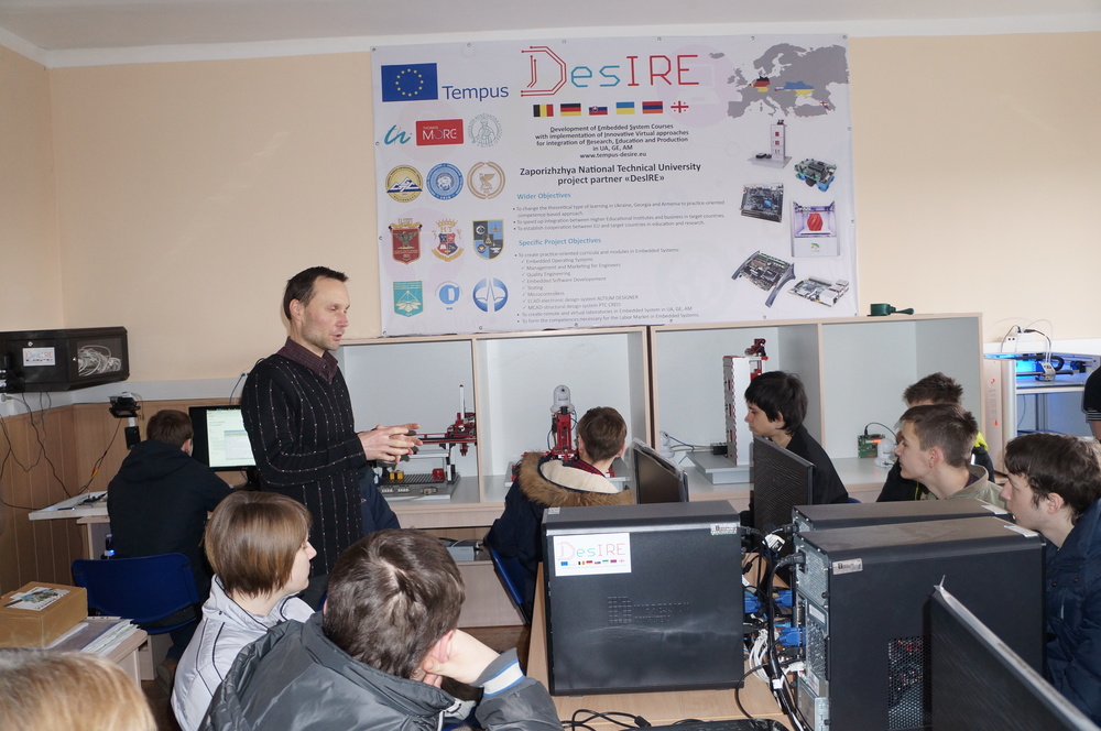 Ще у жовтні минулого року згідно з планом проекту DESIRE «Розробка курсів з вбудованих систем з використанням інноваційних віртуальних підходів для інтеграції науки, освіти та промисловості в Україні, Грузії, Вірменії» ректор ЗНТУ проф. С. Бєліков та координатор проекту Дірк Ван Мероде (Томас Мор Мехелен-Антверпен, Бельгія), урочисто відкрили нову Лабораторію вбудованих систем та віртуальної інженерії на базі кафедри програмних засобів. Сьогодні лабораторія активно працює над виконанням освітніх та дослідницьких проектів.